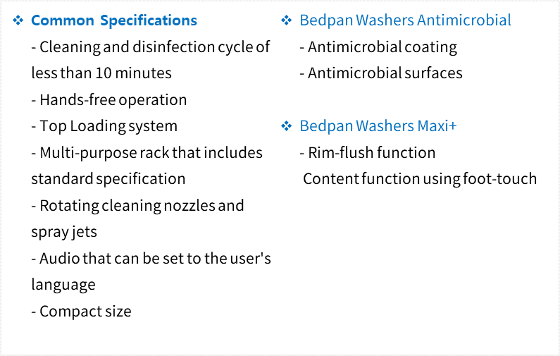 The PANAMATIC product line is designed to wash and disinfect bedpans, commode pans, urinals, and other similar items made from various materials such as plastic or stainless steel.