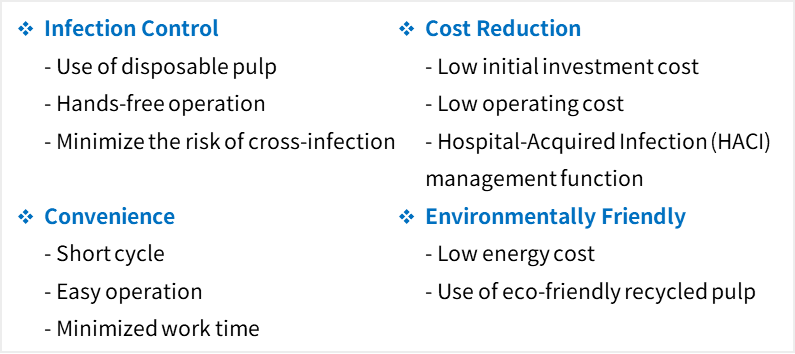 The PULPMATIC product line processes pulp most safely and effectively through hands-free operation and antibacterial surface treatment technology to minimize the risk of cross-infection.