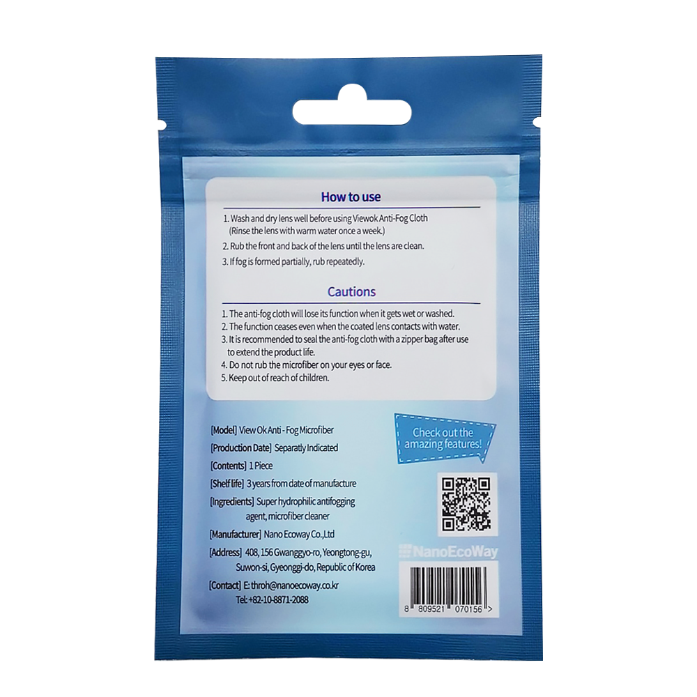 View Ok can disinfect 99.9% of bacteria on the surface of lenses and gives clear views at all times not only during wearing face masks, that occurs fogging or a certain circumstance like high humidity but also can be used for sunglasses, goggles, mirrors and helmets, etc.