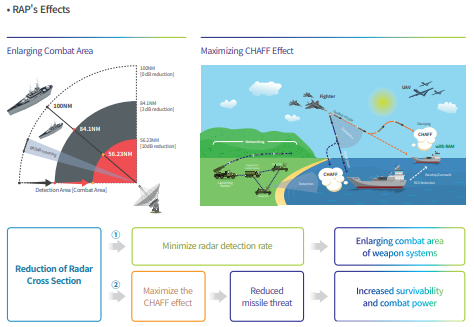 exterior shape design and application of absorber reduces reflected electromagnetic waves. RAP is one of