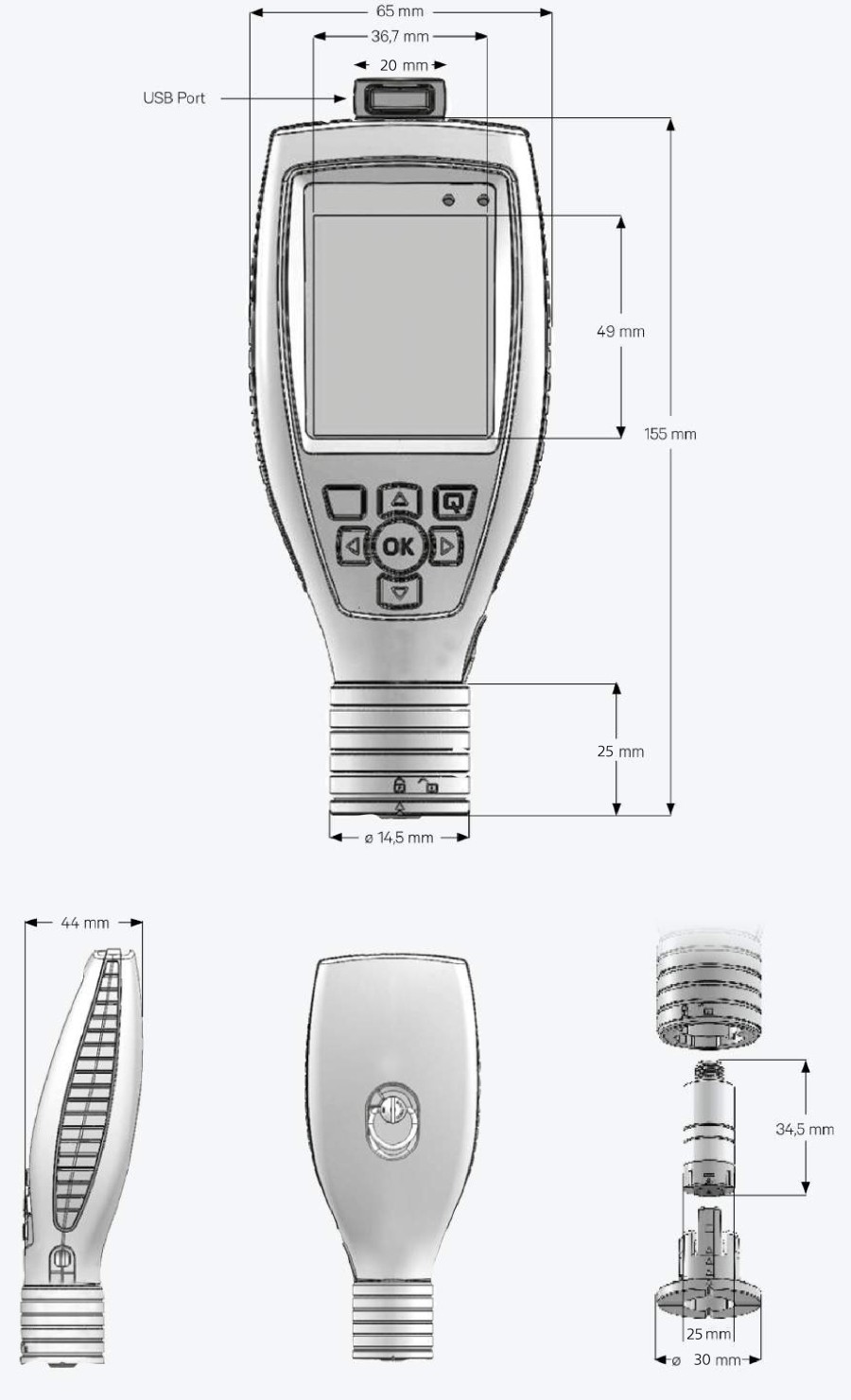 QNix® 9500에는 다양한 소재에서 정확한 측정 결과를 보장하는 간단한 조정 기능이 있습니다.