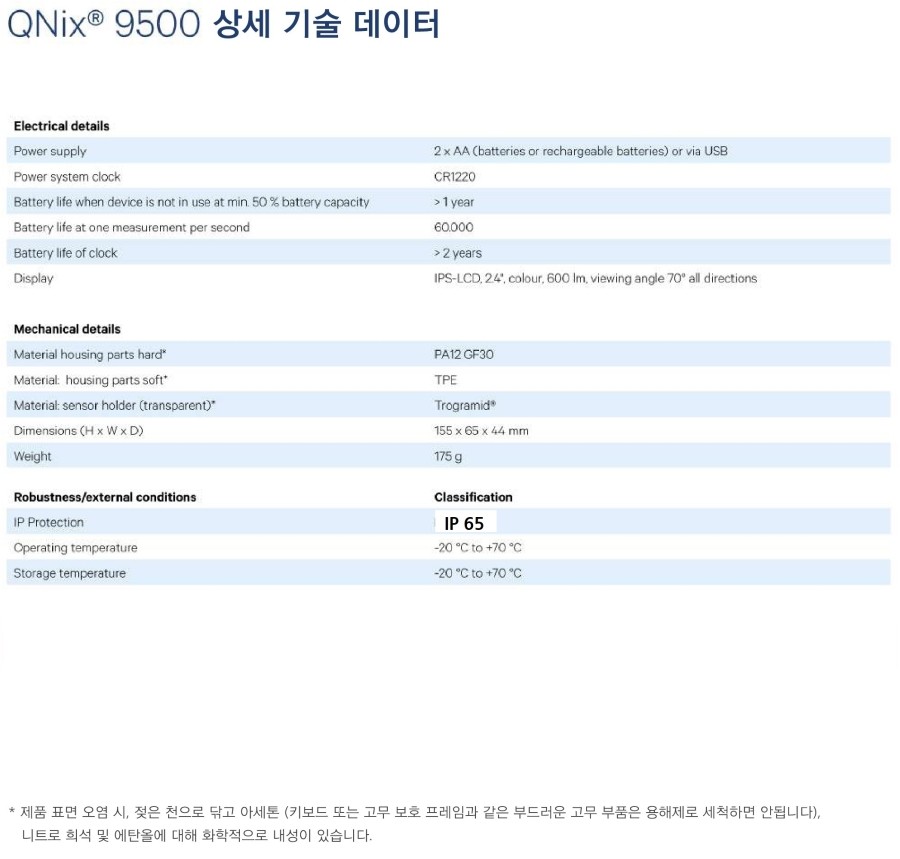 새로운 QNix® 9500의 기능, 장점 및 기술 데이터에 대해 확신을 사용자에게 보증할 수 있으며, 모든 측정 작업에 새로운 가치가 추가 될 것입니다. 제품의 품질과 고객을 향한 서비스는 항상 우리의 모토 입니다.