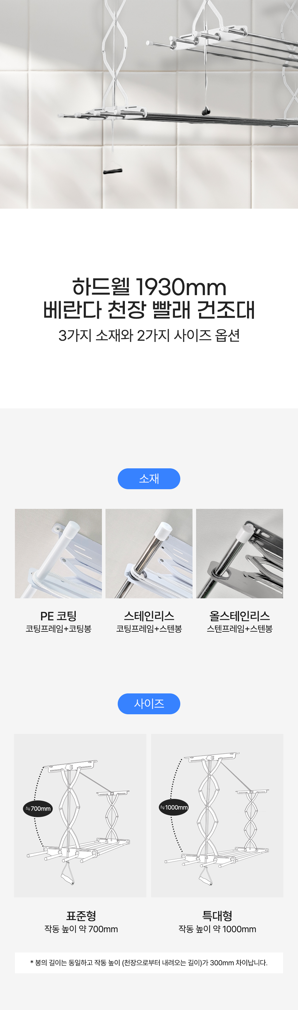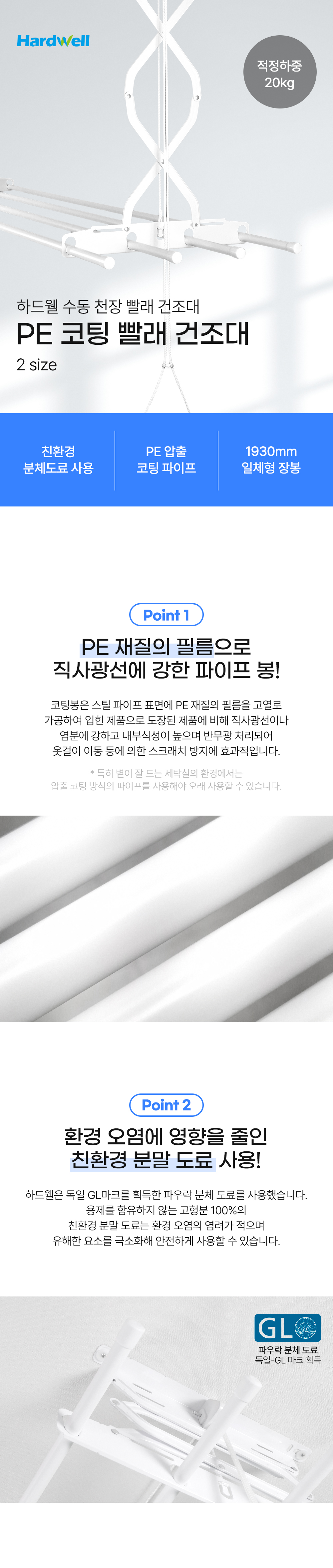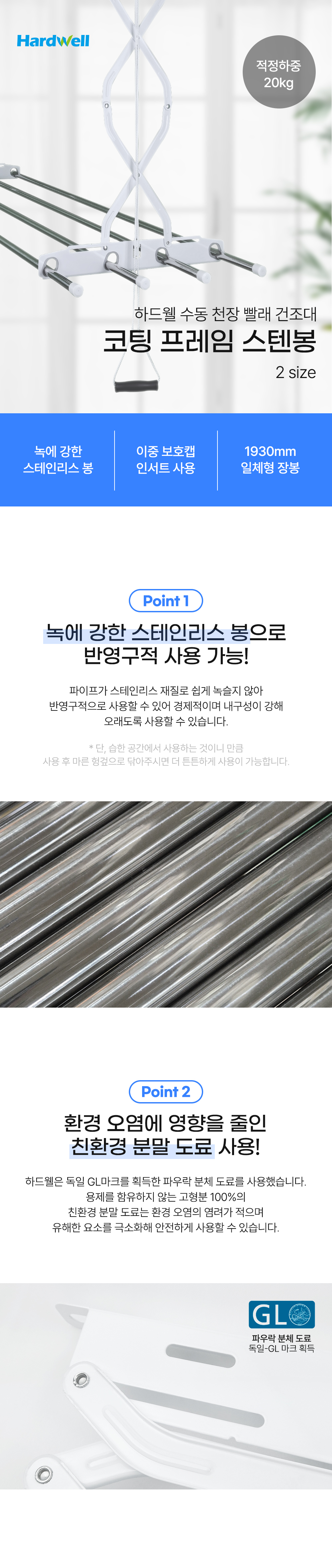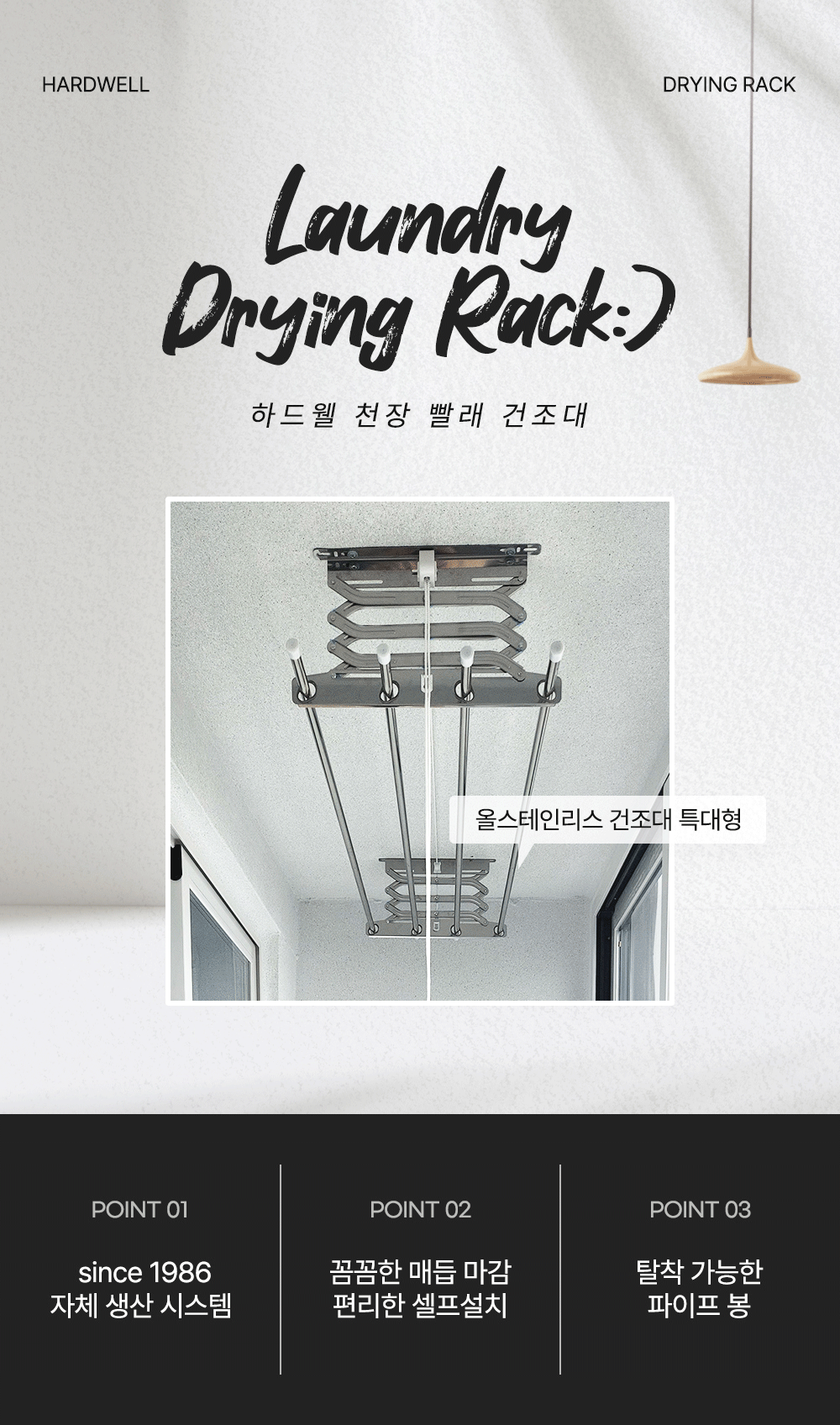 Hardwell ceiling veranda clothes drying rack rod length 1930mm