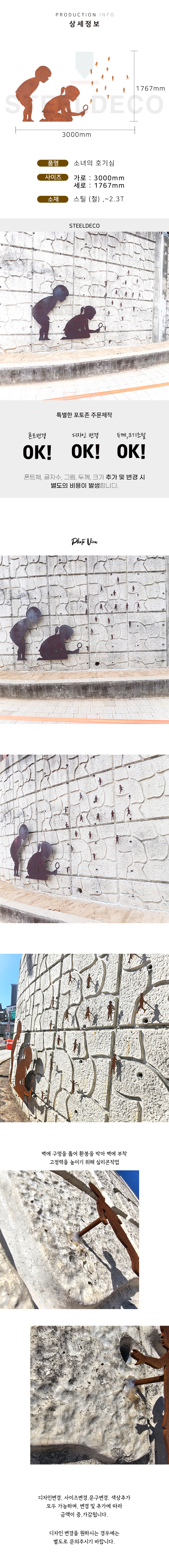 스틸데코 코르텐 스틸 철제 포토존 포토월 벽면 장식 - 소녀의 호기심