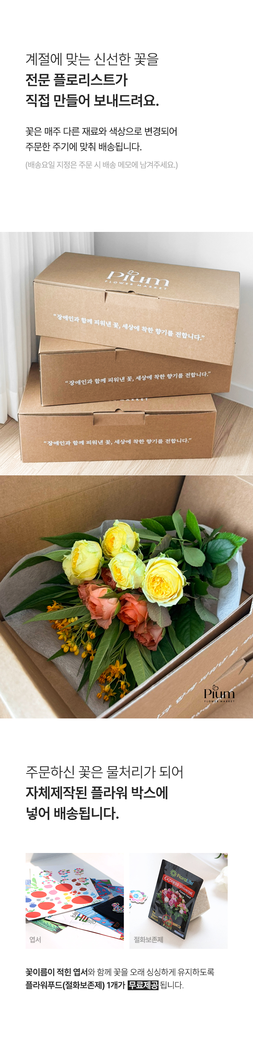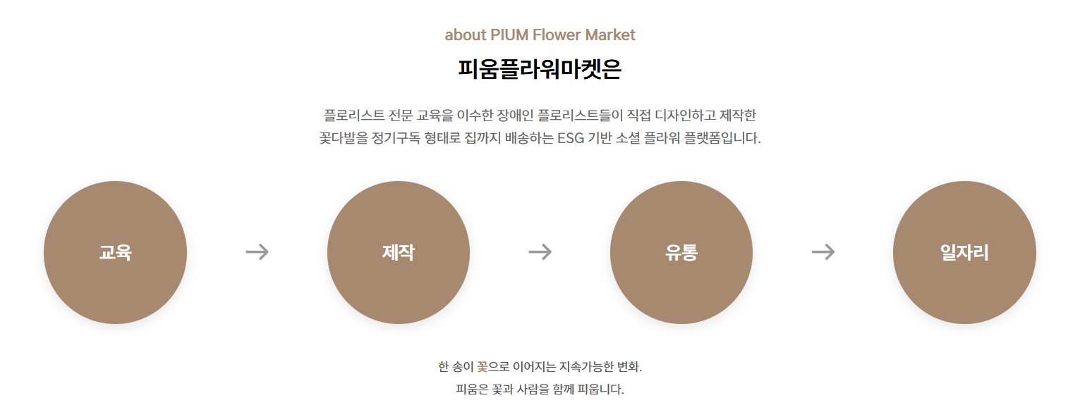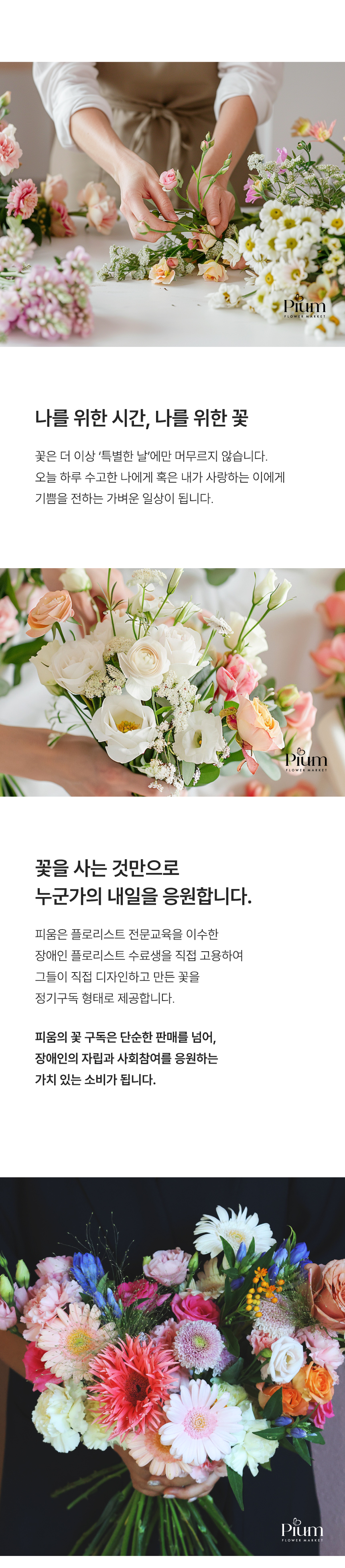 피움 플라워마켓은 플로리스트 전문교육을 이수한 장애인 수료생을 직접 고용하여 그들이 직접 디자인하고 만든 꽃을