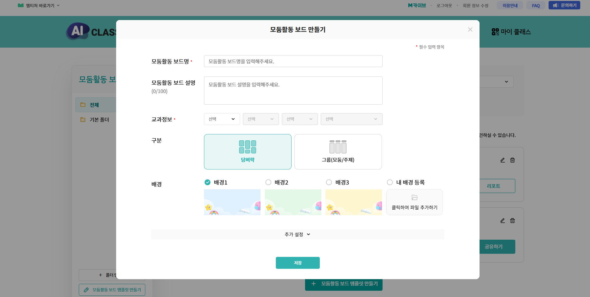 - 모둠활동 설정이 완료되면, 공유 버튼을 통해 공유 대상을 설정하여 이용하면 됩니다.