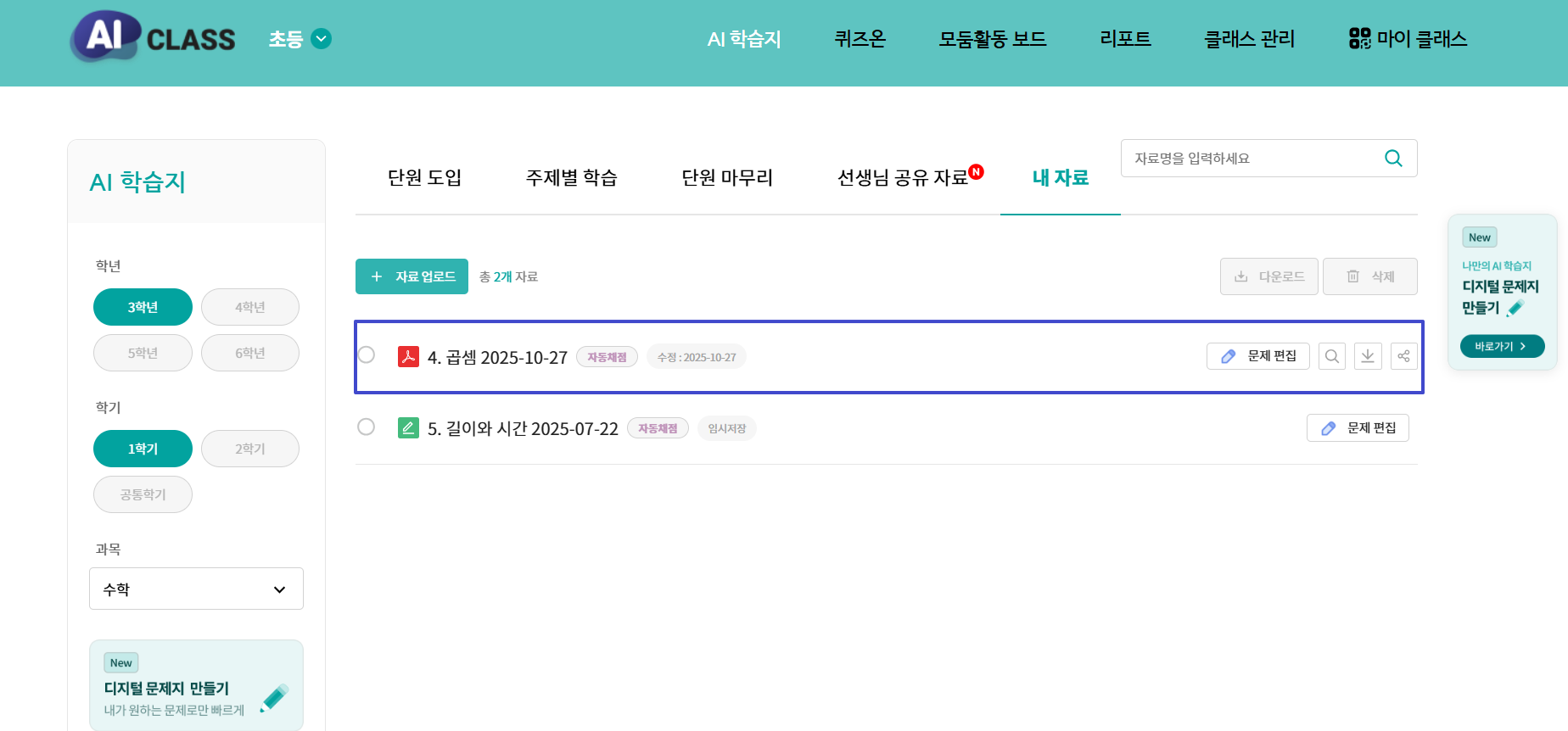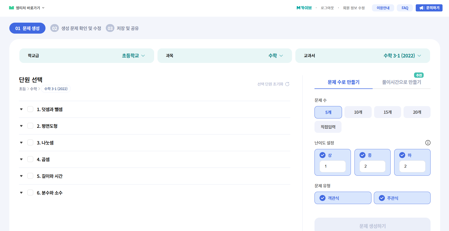 - 원하는 문제로만 빠르게 디지털 문제지 생성이 가능합니다.
