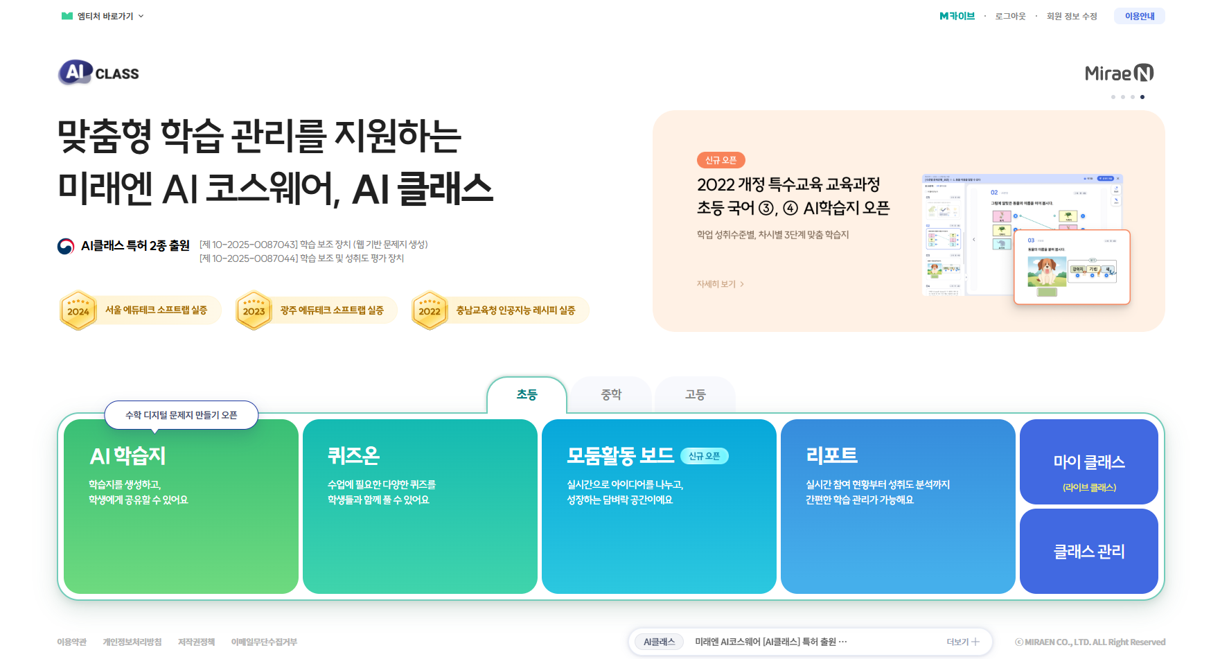 * AI클래스는 미래엔 교수 활동 플랫폼 '엠티처'에서 제공하는 교사 대상 무료 서비스입니다.