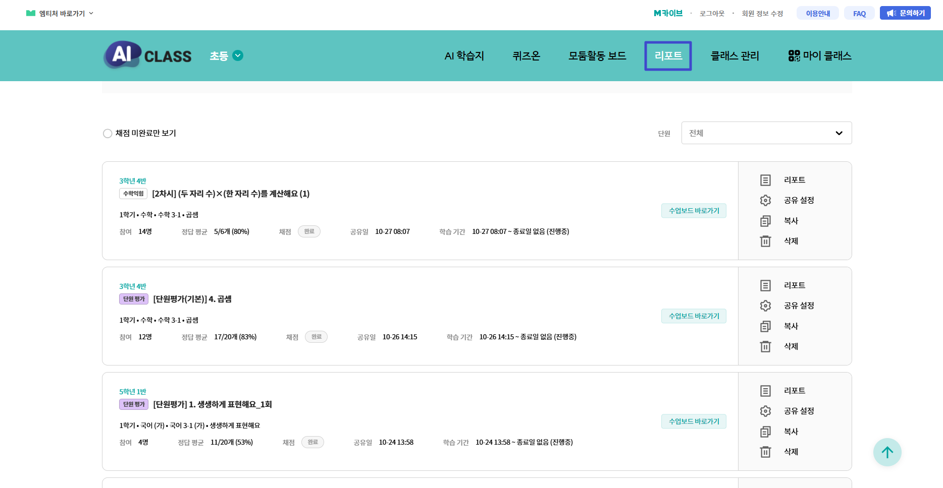 - 선생님께서 공유하신 모든 학습지는 자동 채점되어 리포트로 제공됩니다.