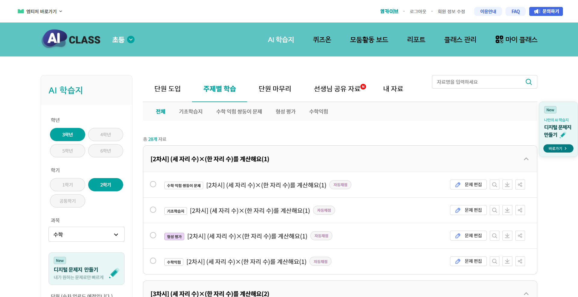 - AI클래스의 AI 학습지는 전 과목 자동채점 학습지와 직접 제작이 가능한 디지털 문제지를 제공합니다.