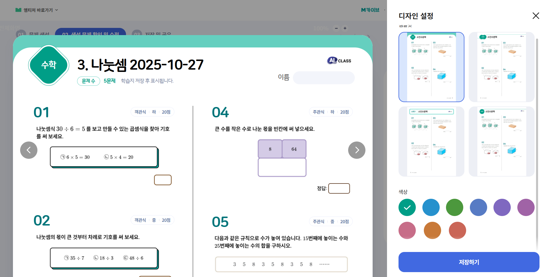 - 디지털 문제지 전용 '디자인 템플릿'을 통해 선생님의 취향에 맞게 문제지 디자인이 가능합니다.