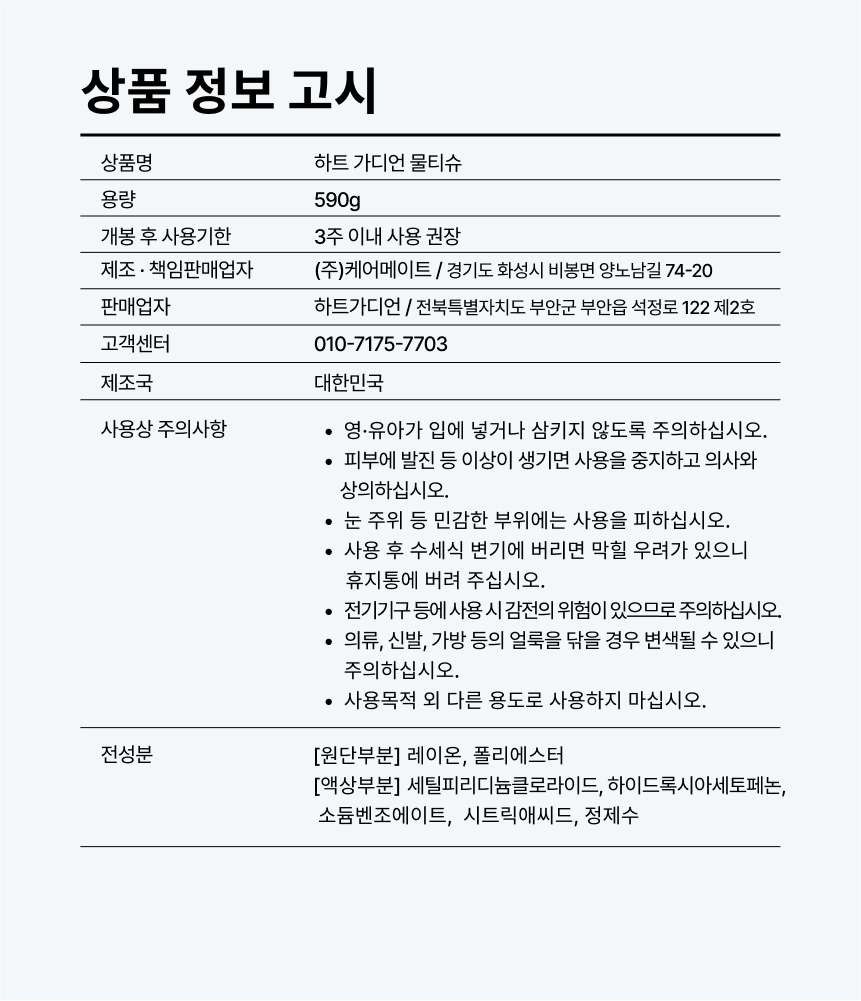 고객의 건강과 품격을 지키는 프리미엄 물티슈입니다.