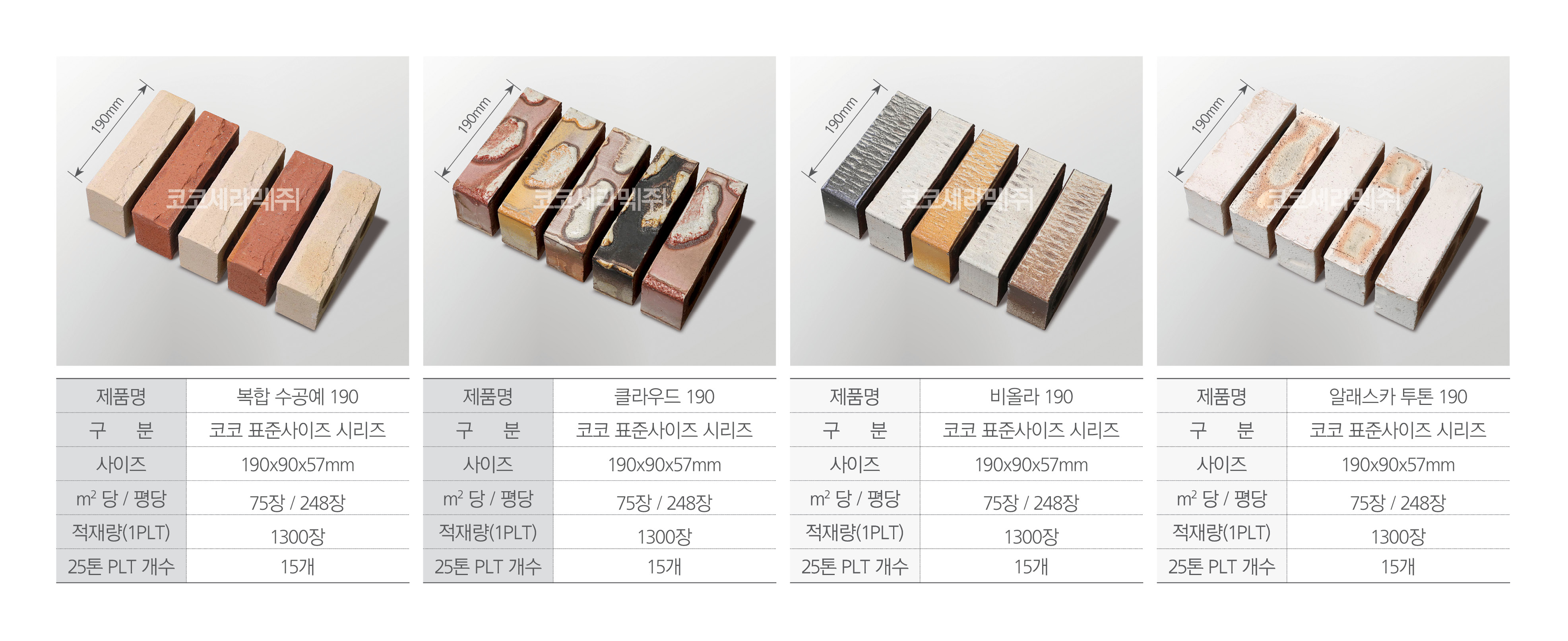 코코세라믹(주) 점토벽돌 (학교건물, 관급건축자재로 적합한 190 시리즈 벽돌)