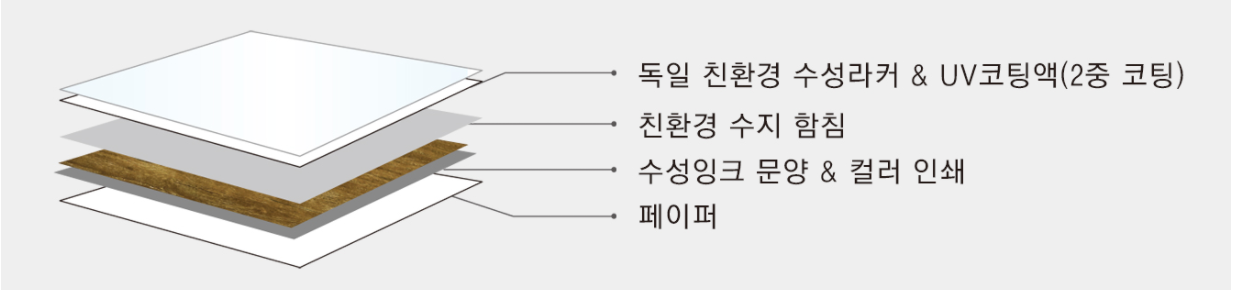 수성잉크로 인쇄하고 특수 수용성수지로 함침한 후 독일산 친환경 수성 라커와 UV 코팅액으로 2중 코팅하여 제작한 특수 친환경 시트인 우딘 시그니처 페이퍼시트를 적용한 도어입니다.