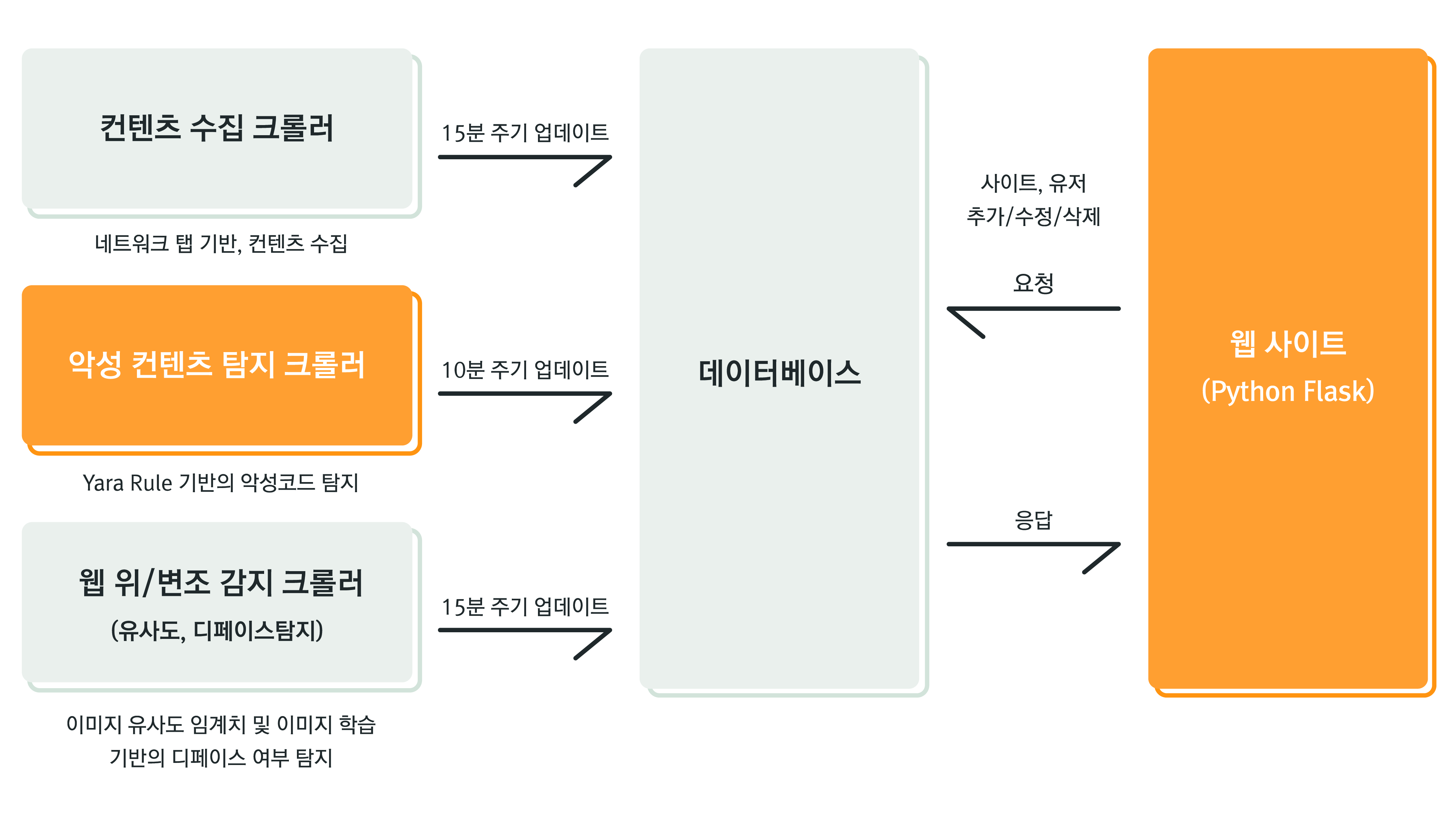 - 웹 사이트 컨텐츠(Document, Javascript) 수집, Yara Rule 기반 악성 콘텐츠 판단