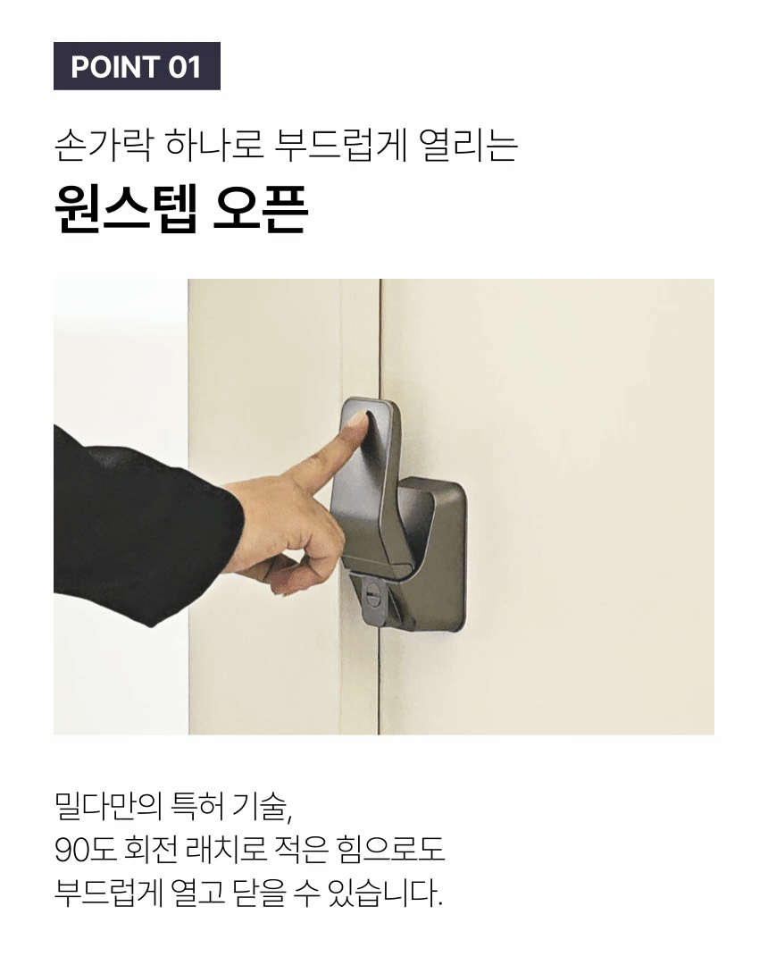 한번에 부드럽게 밀고 당기는 프리미엄손잡이입니다