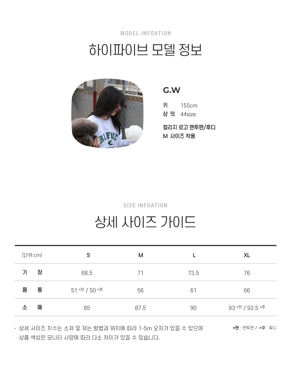 컬리지 로고 그래픽 맨투맨&후드 (보호자용)