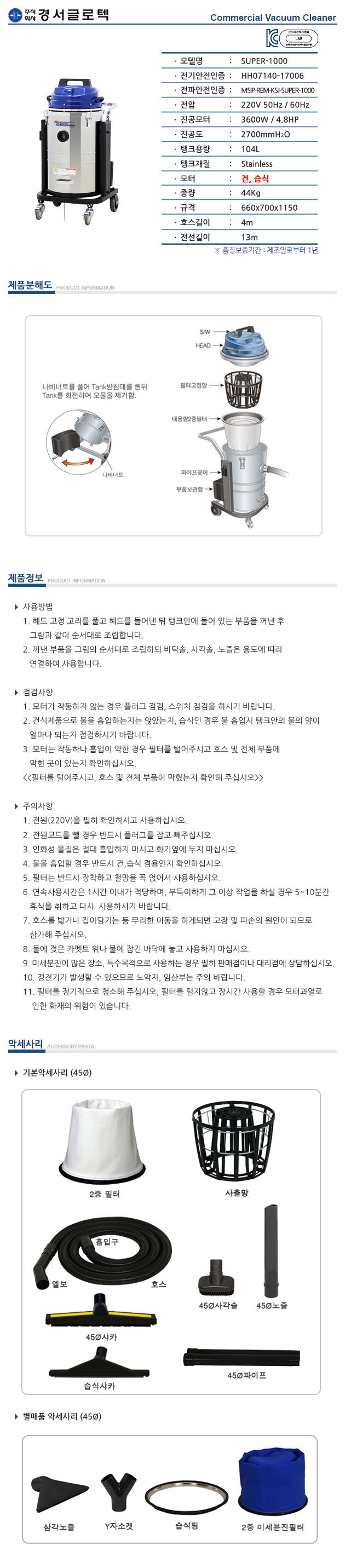 경서글로텍 산업용청소기(SUPER-1000)