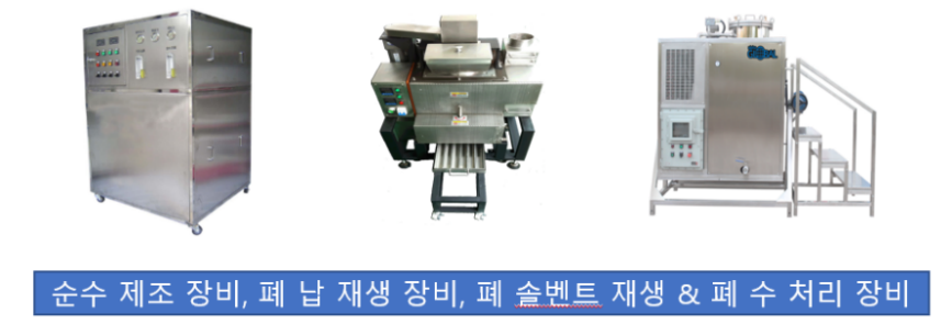 각 제조 환경에서 자원 재 활용 및 원가 절감을 위해 전자, 반도체, 산업 및 공업 제조 현장에서 발생한 폐 납 및 폐 솔벤트를 재생하는 장비이다.