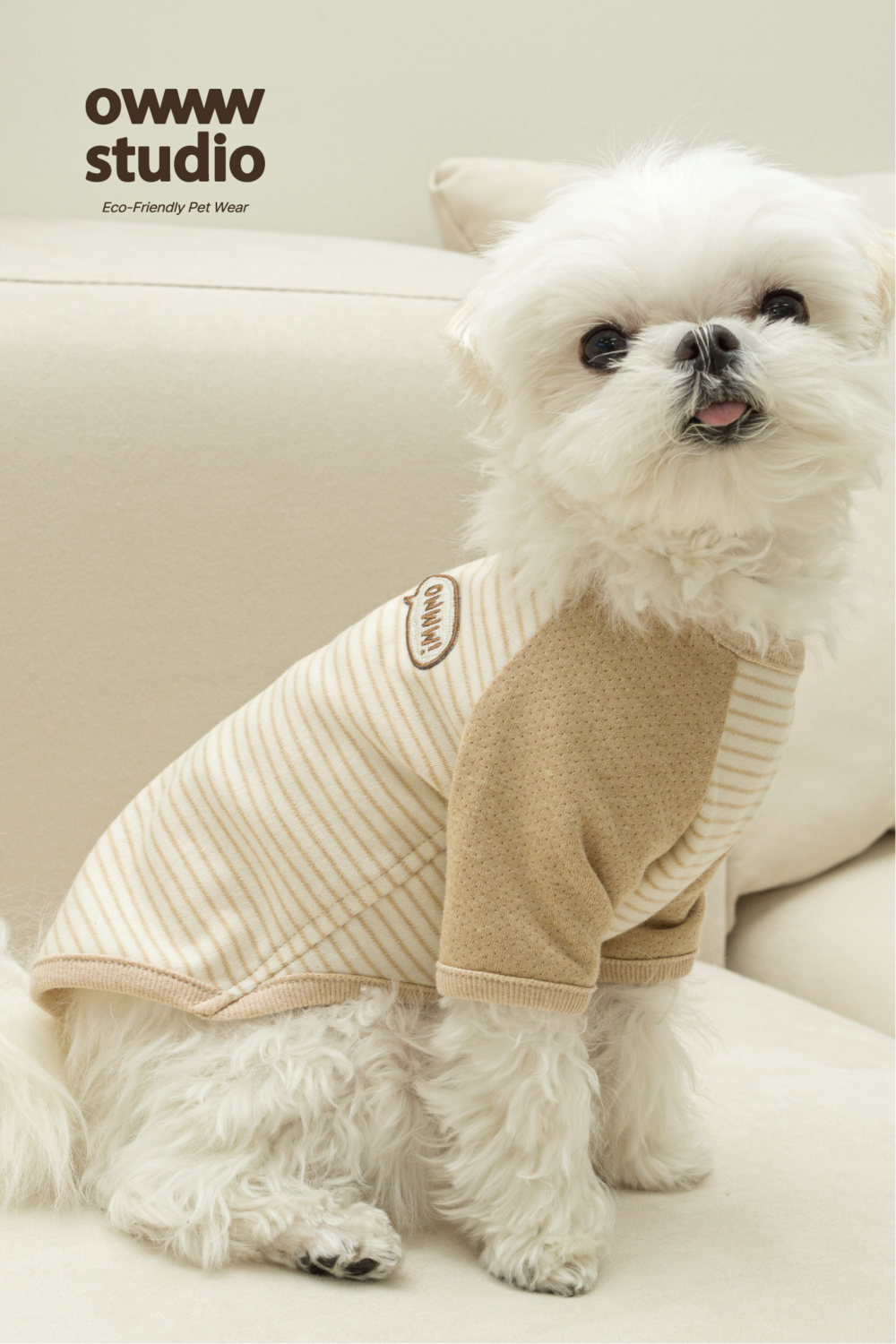 가는 줄무늬 베이지 컬러의 몸판과