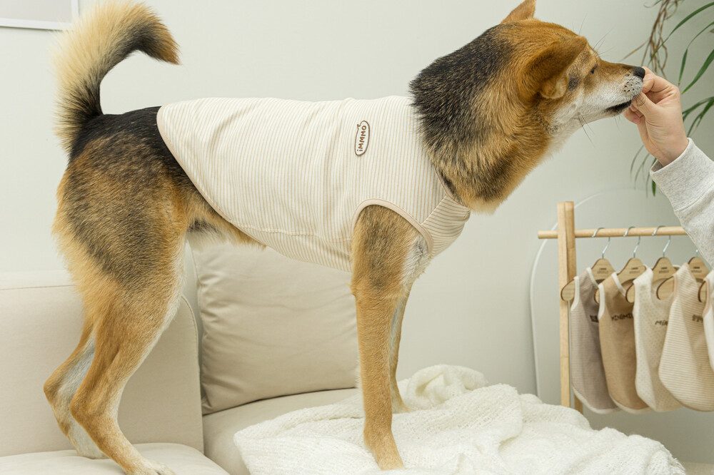 반려동물의 체형을 고려해 배 부분 약간의 고무줄 처리를 해서 조이지 않으면서도 벙벙하지 않은 예쁜 핏을 선사합니다.