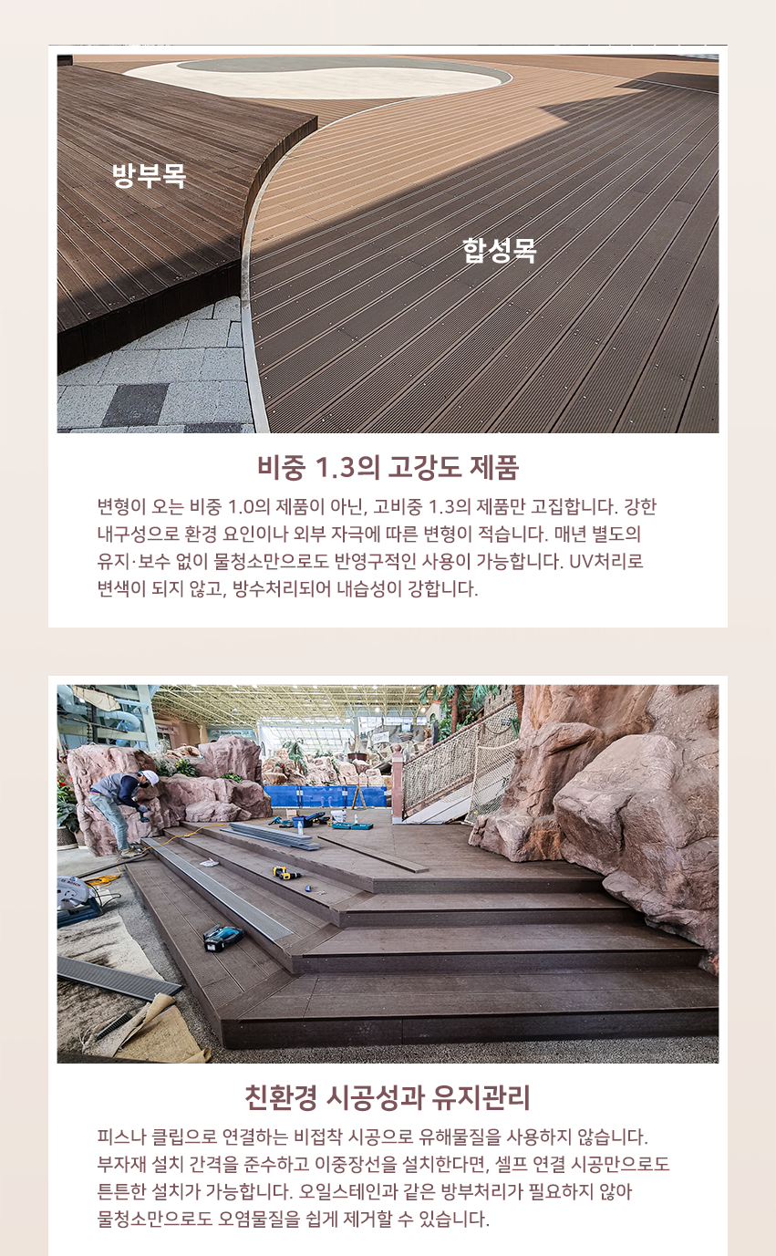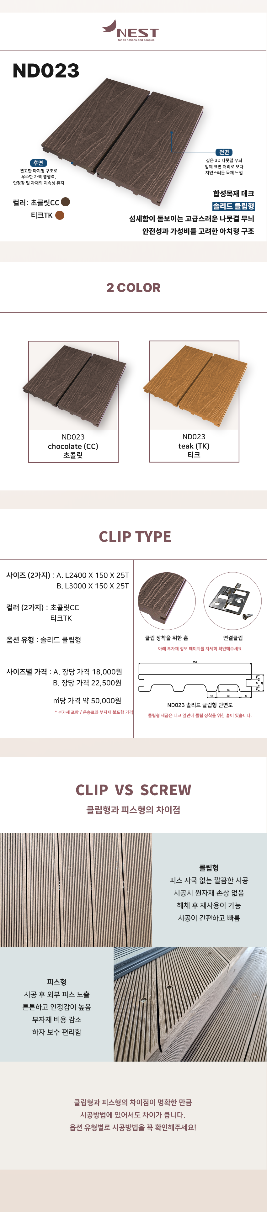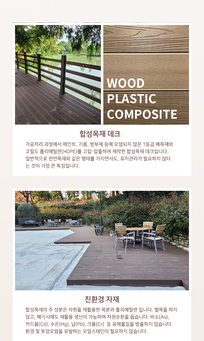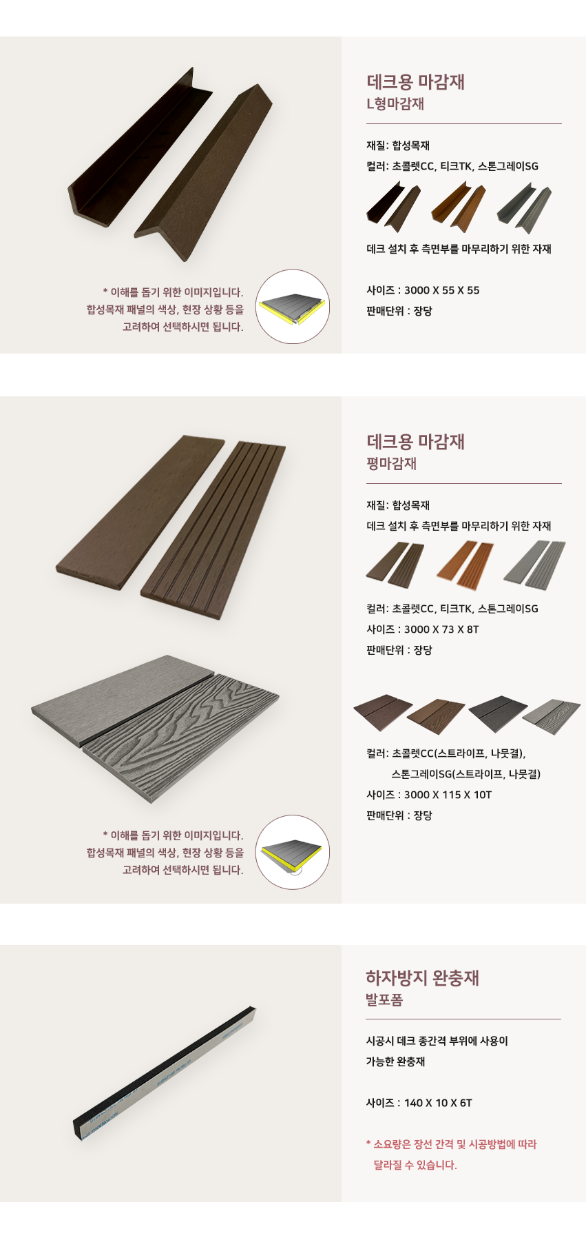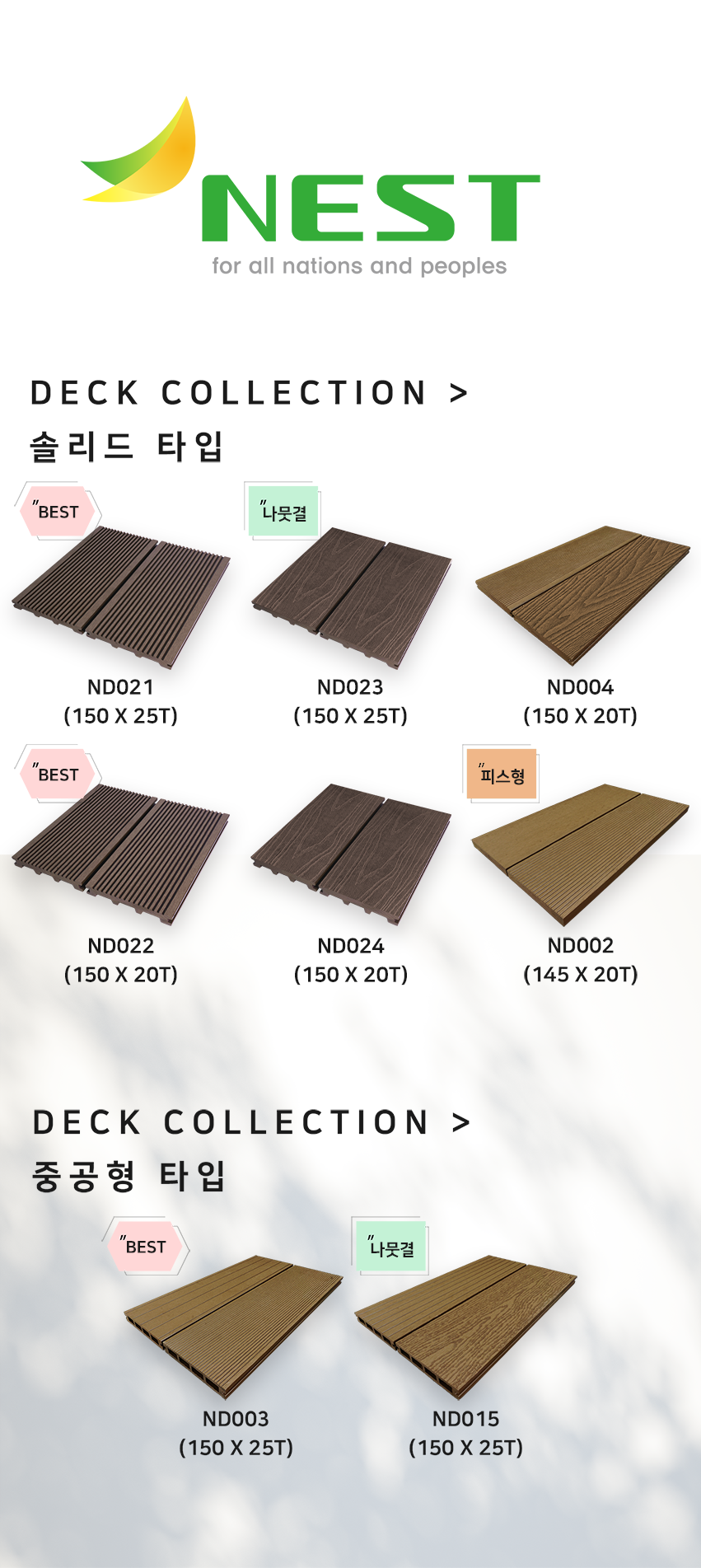 합성목재 데크는 다양한 모델이 준비되어 있습니다.