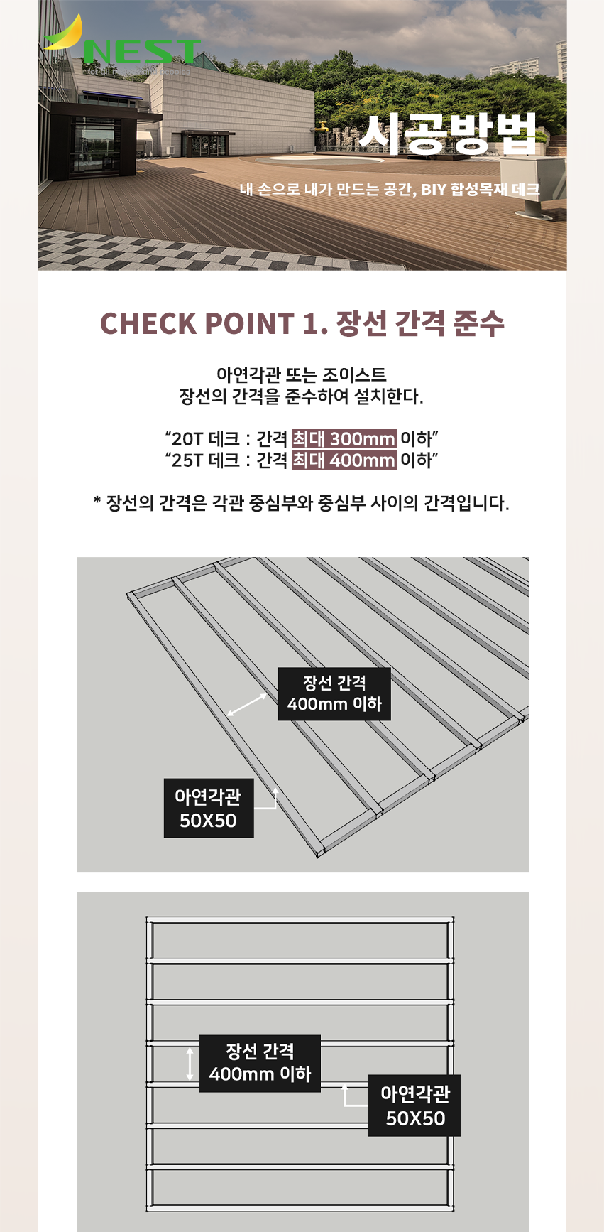 합성목재 데크 시공 방법에 대해 말씀드리겠습니다.