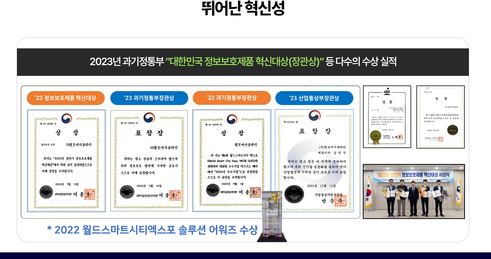 조달청 우수조달제품, 산업통상부 NEP 신제품, 조달청 혁신제품, 과기정통부 우수 정보보호 제품 보유기업