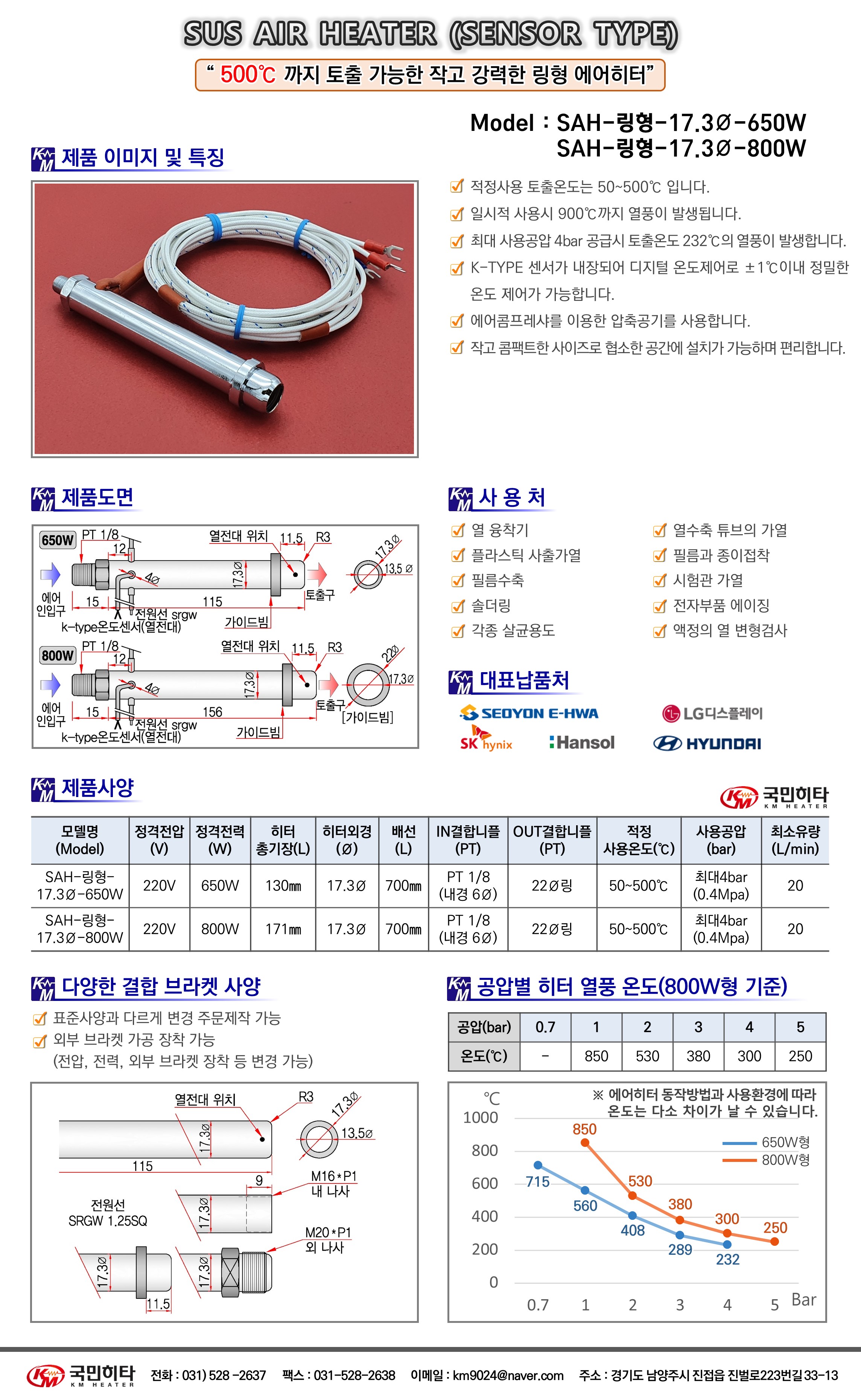 50℃~900℃의 안정된 고열의 열풍을 발생 시킬 수 있는 제품입니다.