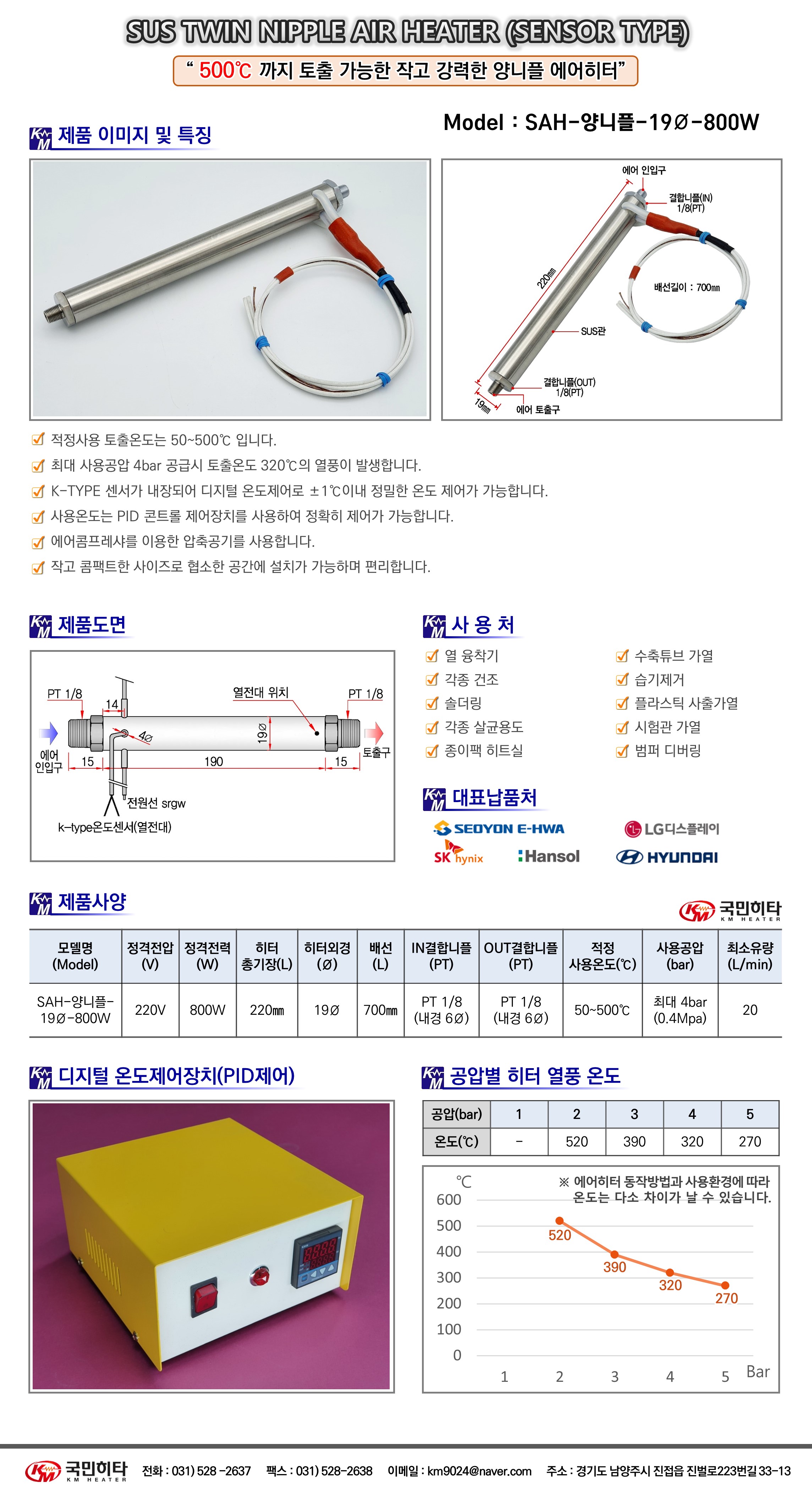 500℃까지 토출 가능하며 작고 강력한 양니플 에어히터