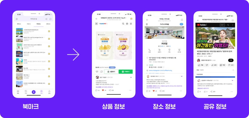 일반 게시물부터 유튜브, 인스타그램, 네이버 블로그, 브런치, 각종 커머스의 상품, 장소까지 모든 반려동물 정보를 저장하고 소비 할 수 있습니다