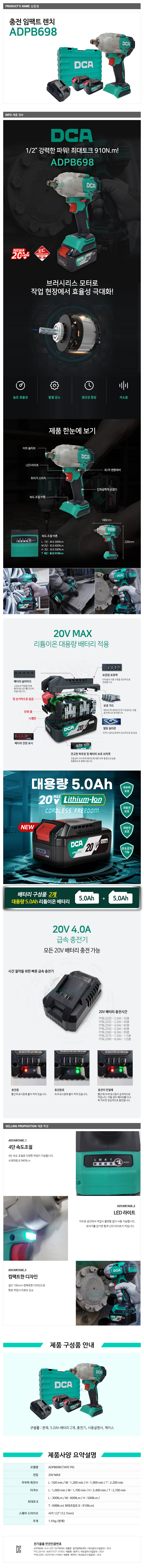 DCA ADPB698FK 충전임팩렌치 4단속도조절