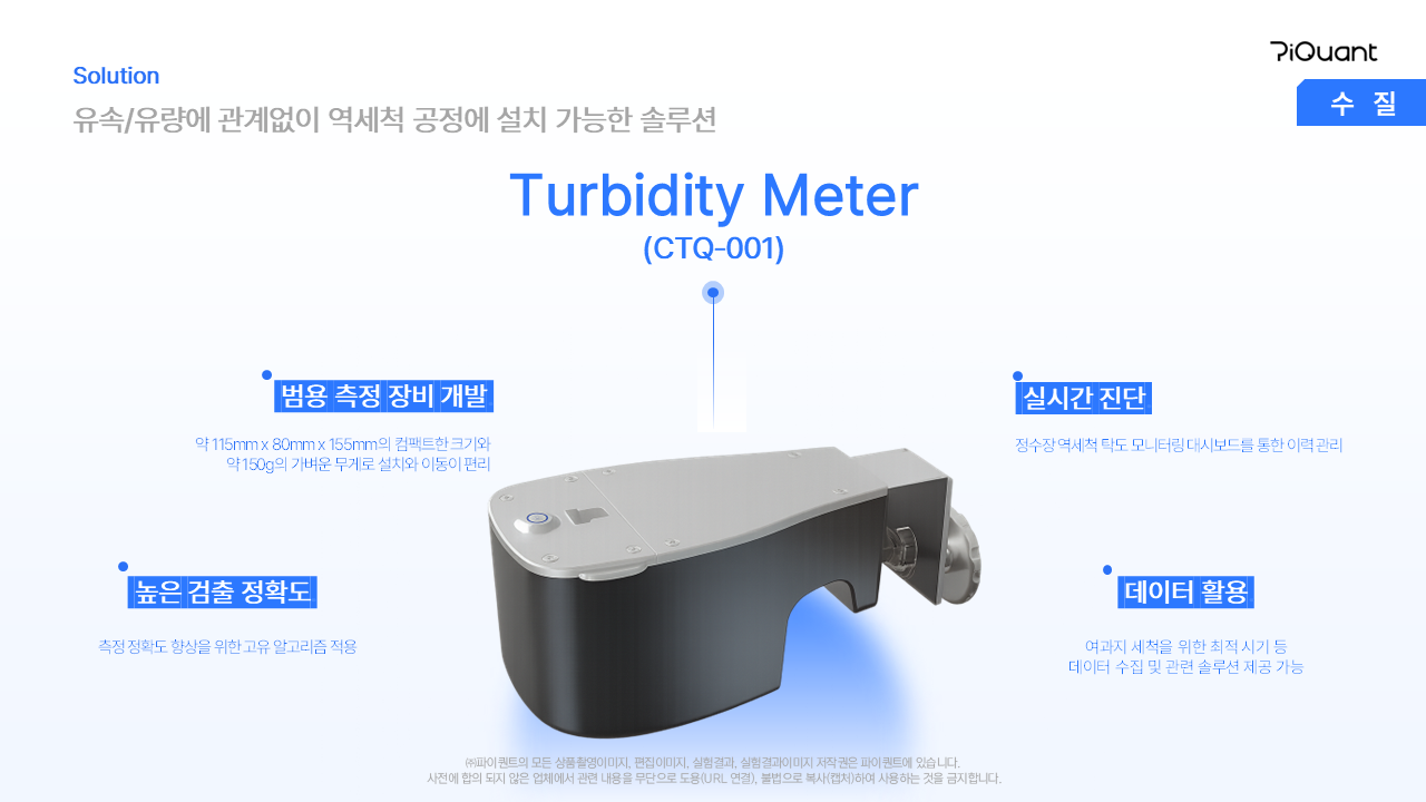 본 장치는 정수장 배출수의 탁도를 실시간으로 측정·분석하여 안정적인 수처리 운영과 지속 가능한 수자원 관리를 지원하는 장비입니다.