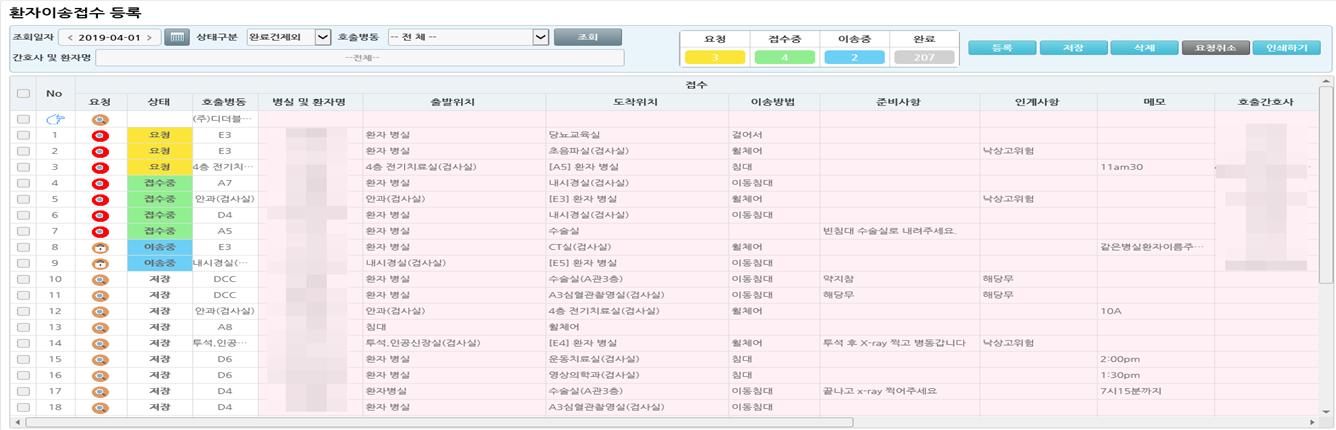 간호사와 이송팀 간의 원활한 업무를 지원하는