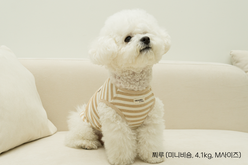 오가닉 심플티 민소매 : 가는 줄무늬 베이지