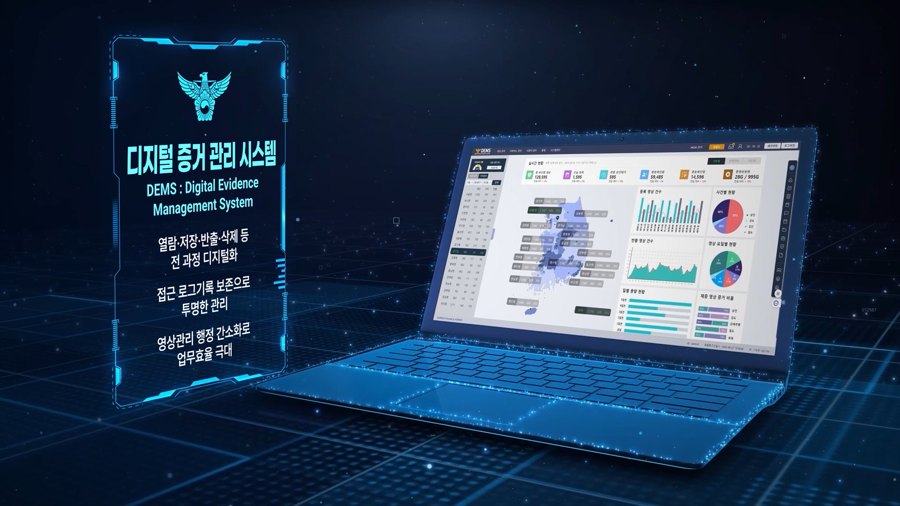 The Digital Evidence Management System (DEMS) digitizes the entire lifecycle of video evidence—including viewing, storage, export, and deletion—while preserving comprehensive access logs to ensure transparency. Furthermore, it streamlines administrative processes related to video management, thereby maximizing operational efficiency.