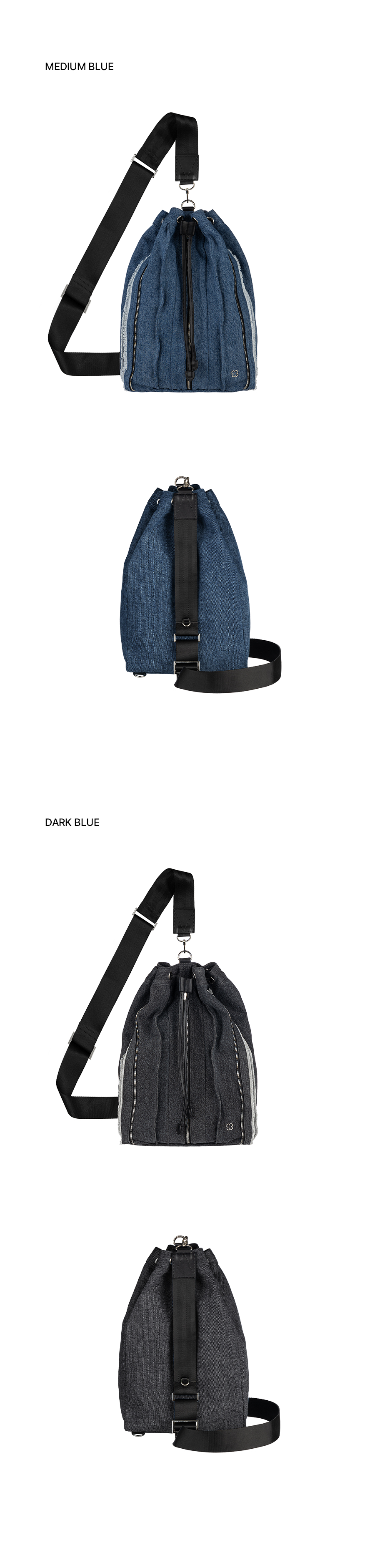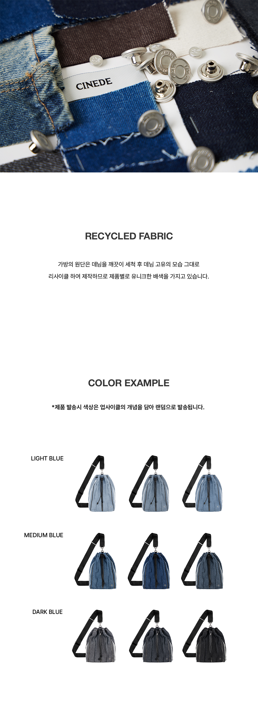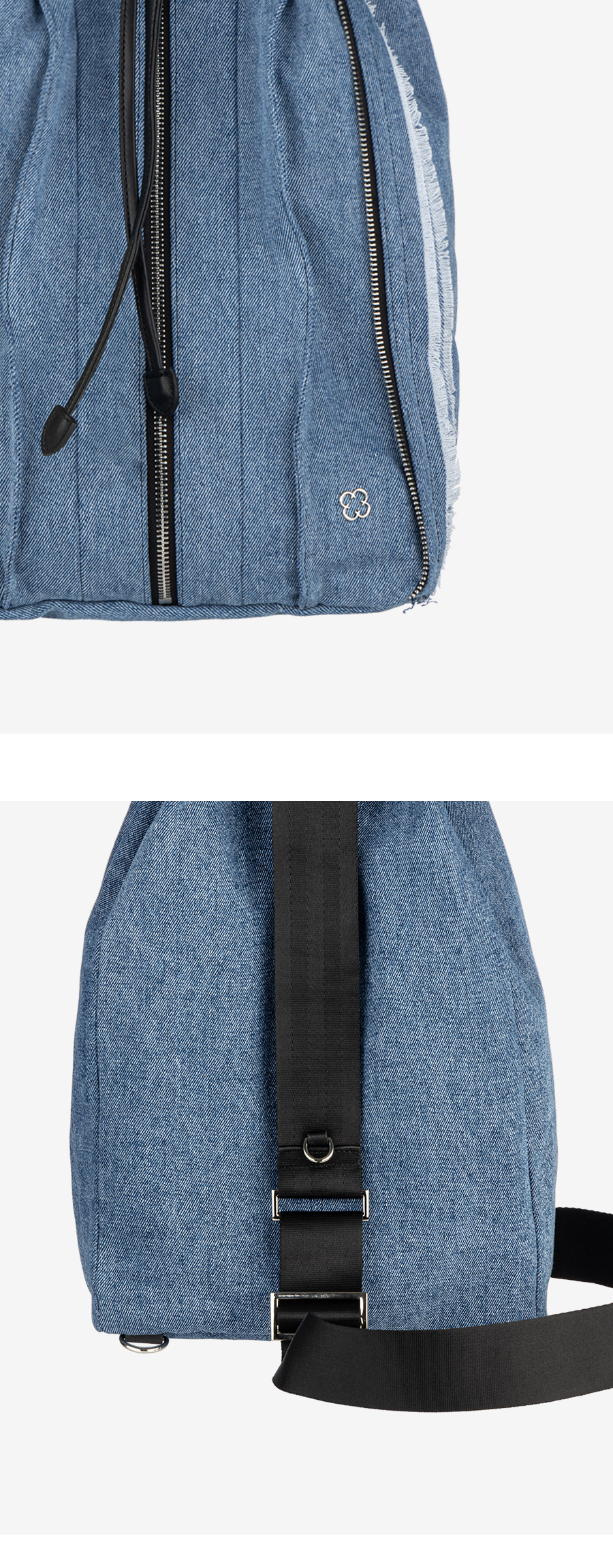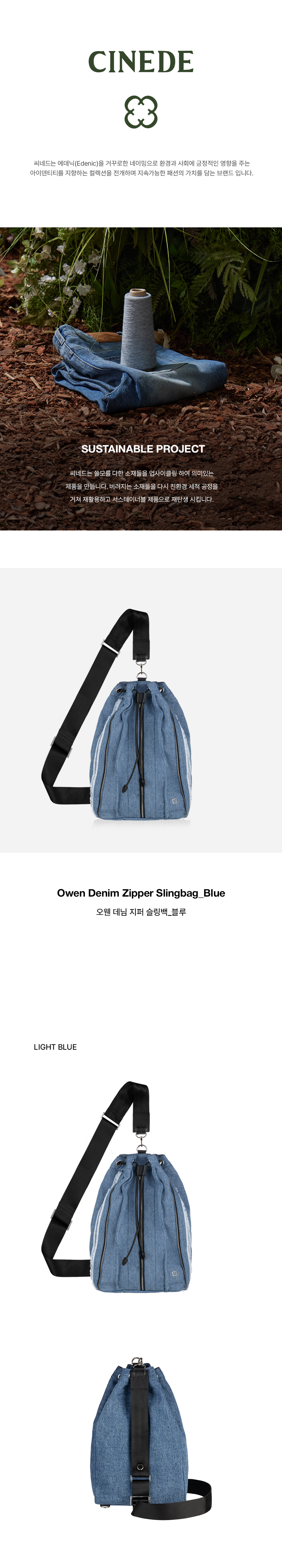 청바지 소재와 안전벨트를 활용한 스트랩을 사용한 슬링백