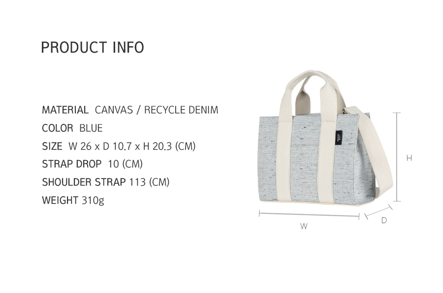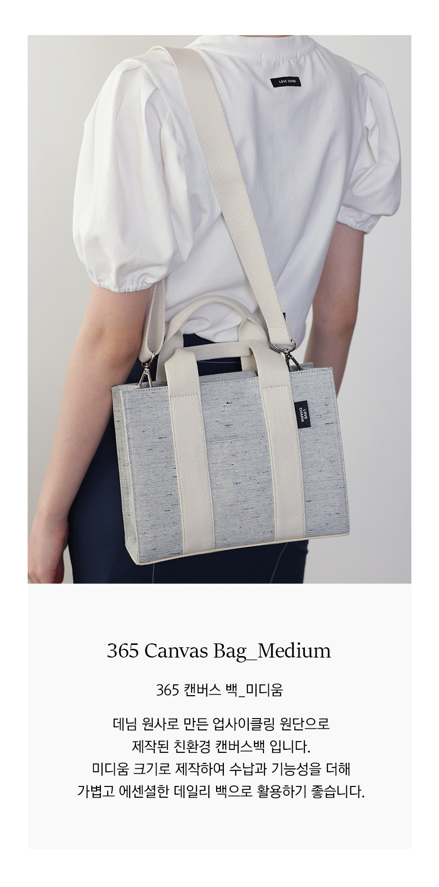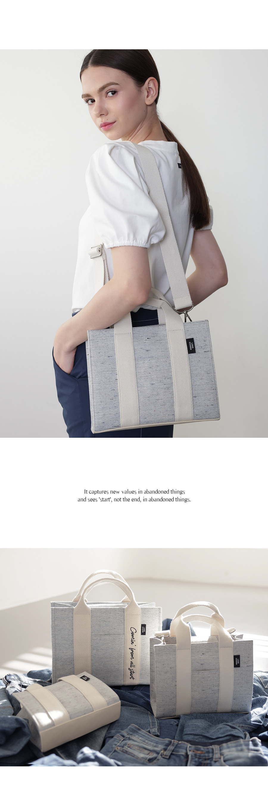 데님 원사로 만든 업사이클링 원단으로 제작된 친환경 백