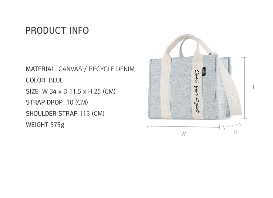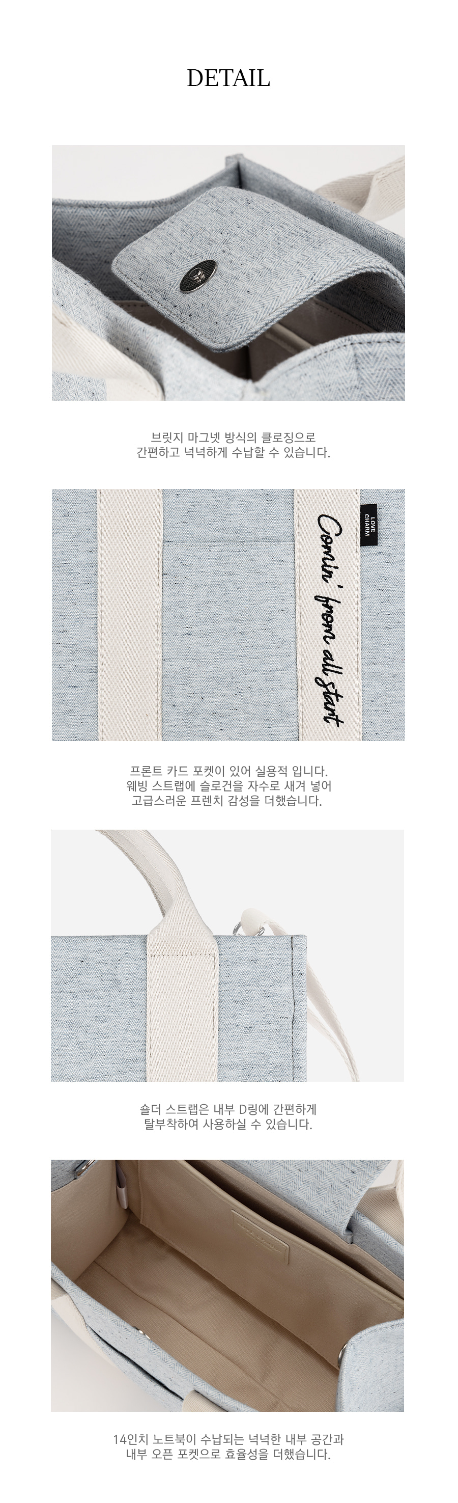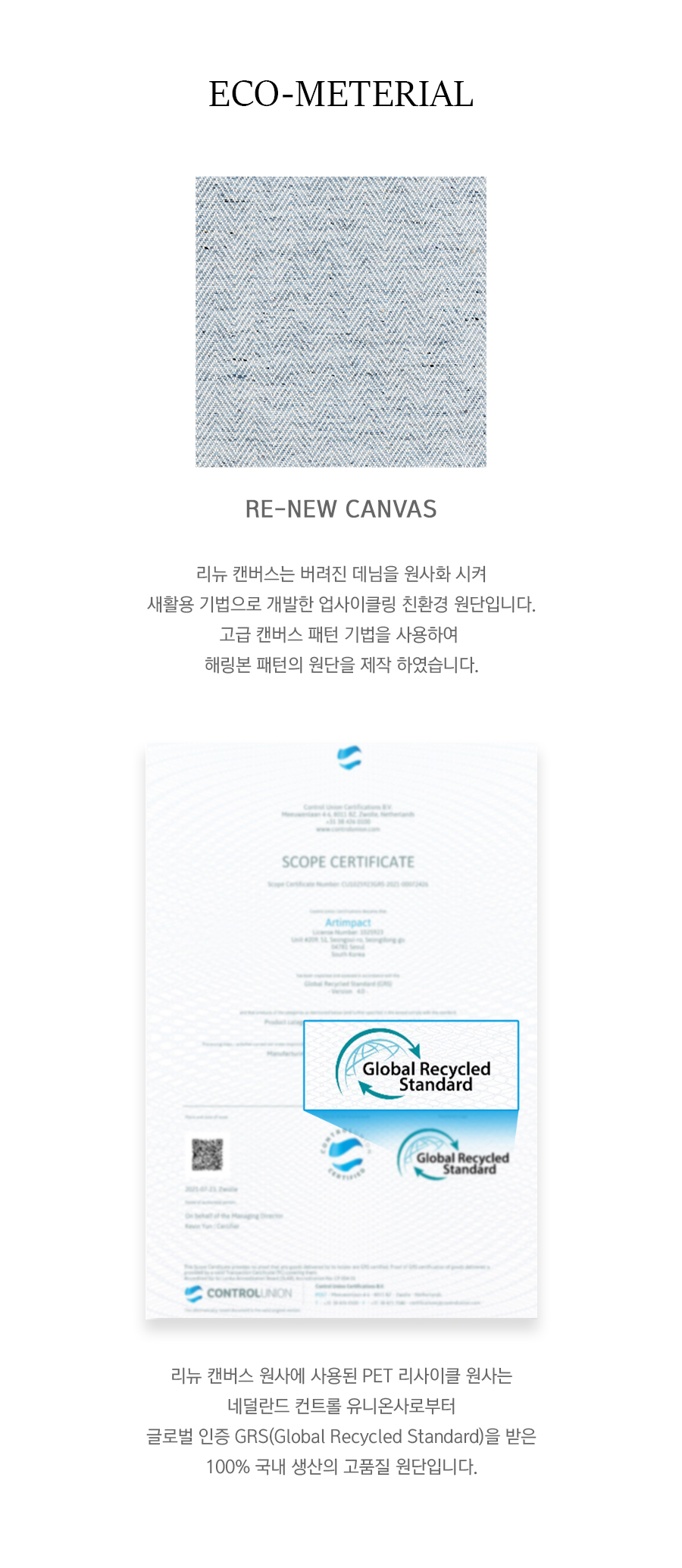 데님 원사로 만든 업사이클링 원단으로 제작된 친환경 백