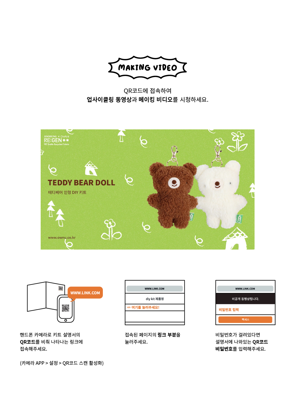 [오운유] 폐플라스틱 원단 테디베어 키링 만들기 체험 키트