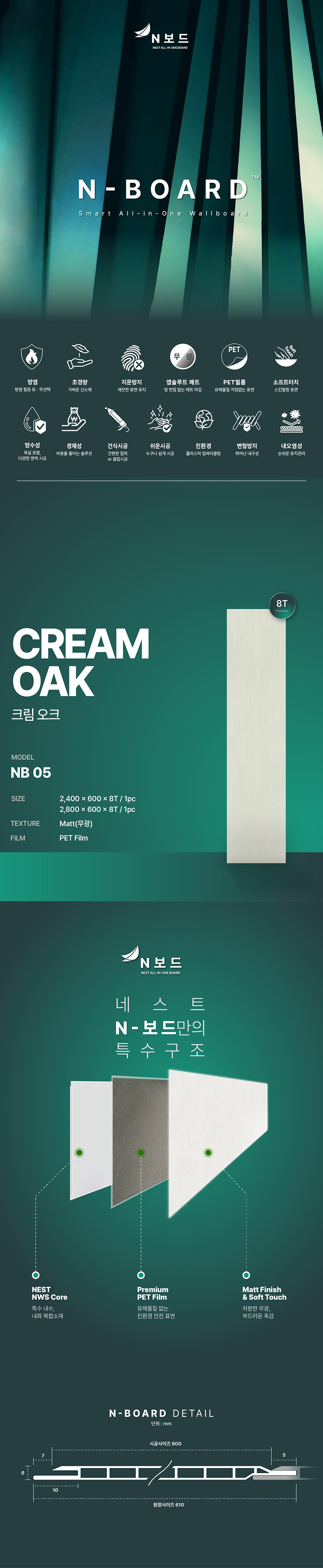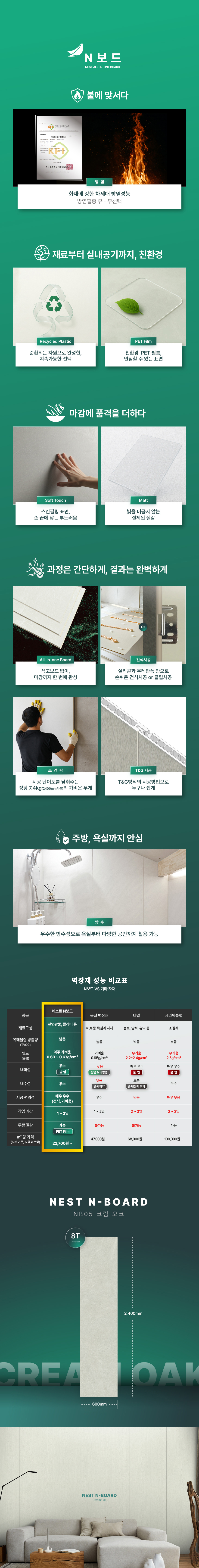 방염 N보드 NB05 크림오크 올인원 인테리어 보드 2400 x 600 x 8T