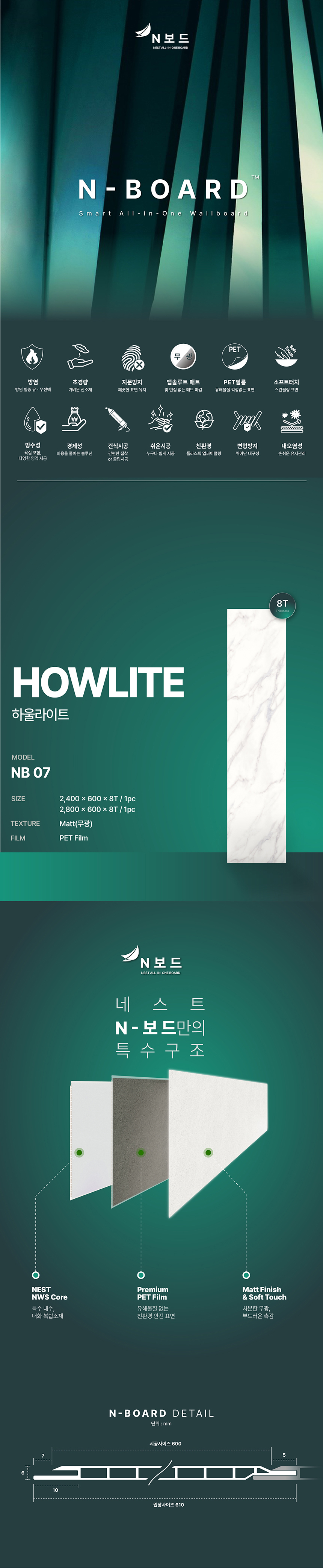 방염 N보드 NB07 하울라이트 올인원 인테리어 보드 2400 x 600 x 8T