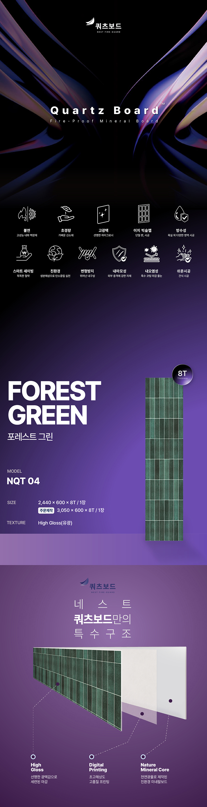 불연 쿼츠보드 NQT04 포레스트그린 2400 x 600 x 8T