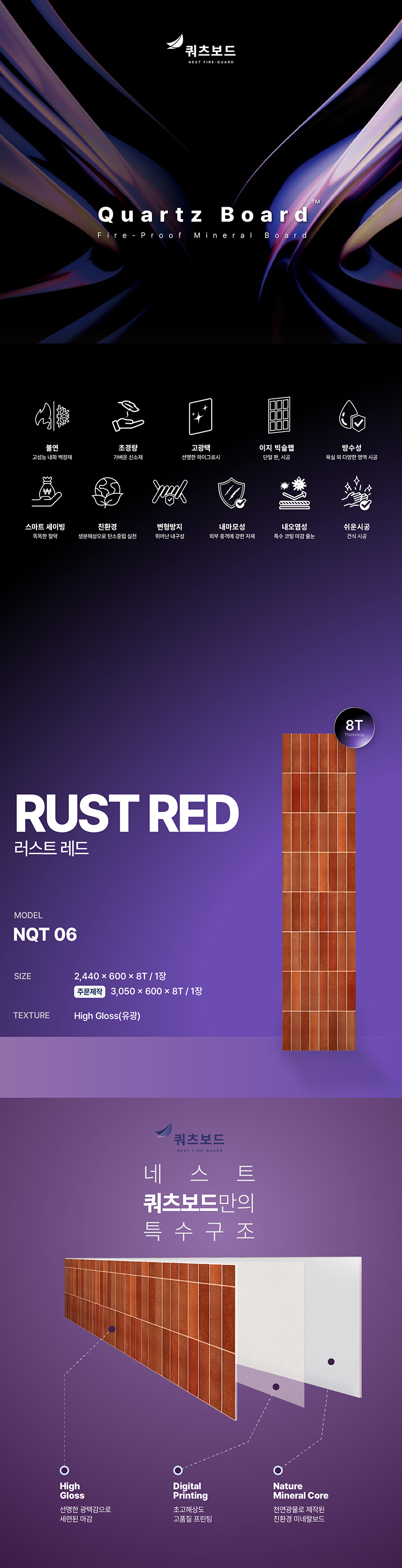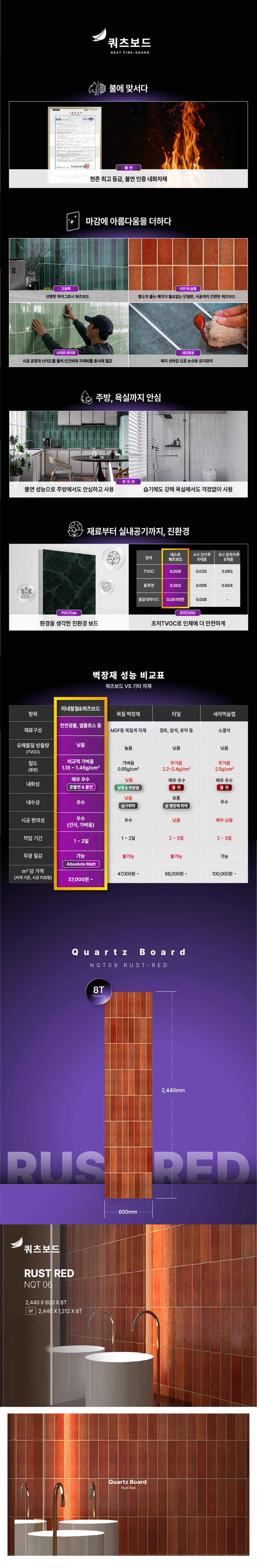 불연 쿼츠보드 NQT06 러스트레드 2400 x 600 x 8T