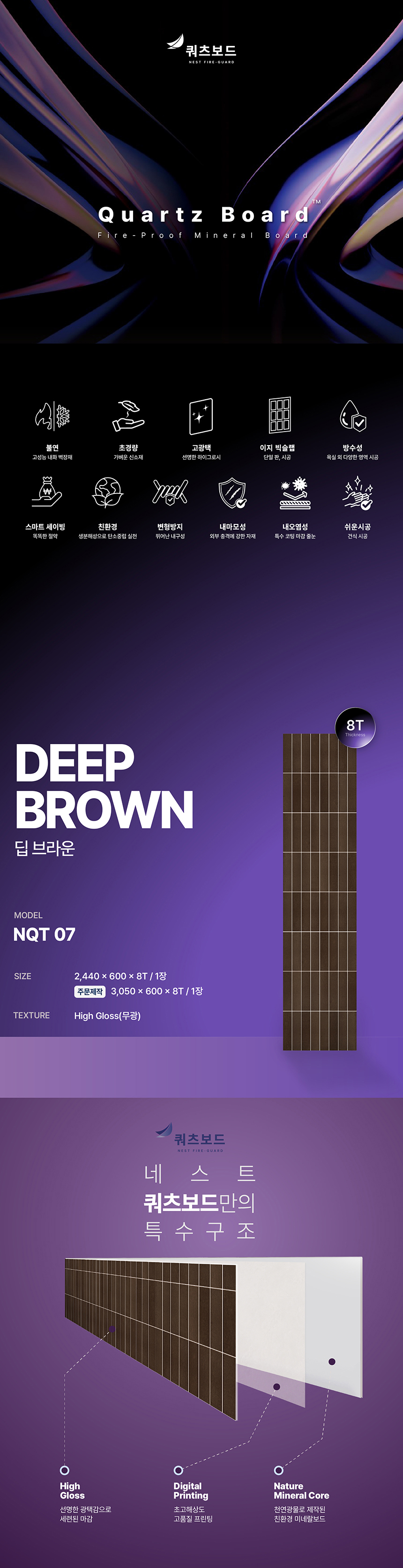 불연 쿼츠보드 NQT07 딥브라운 2400 x 600 x 8T