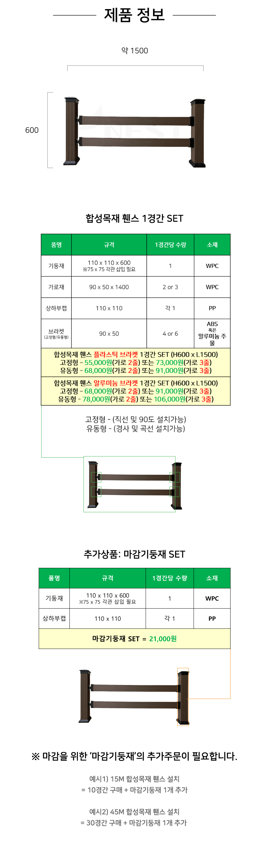 제품 이미지 - 합성목재 휀스 펜스 세트 1경간 0.6m x 1.5m
