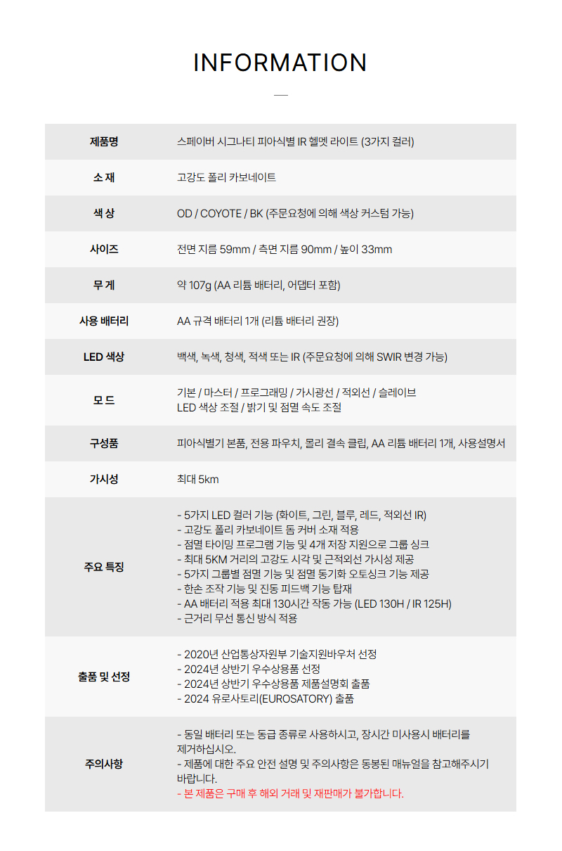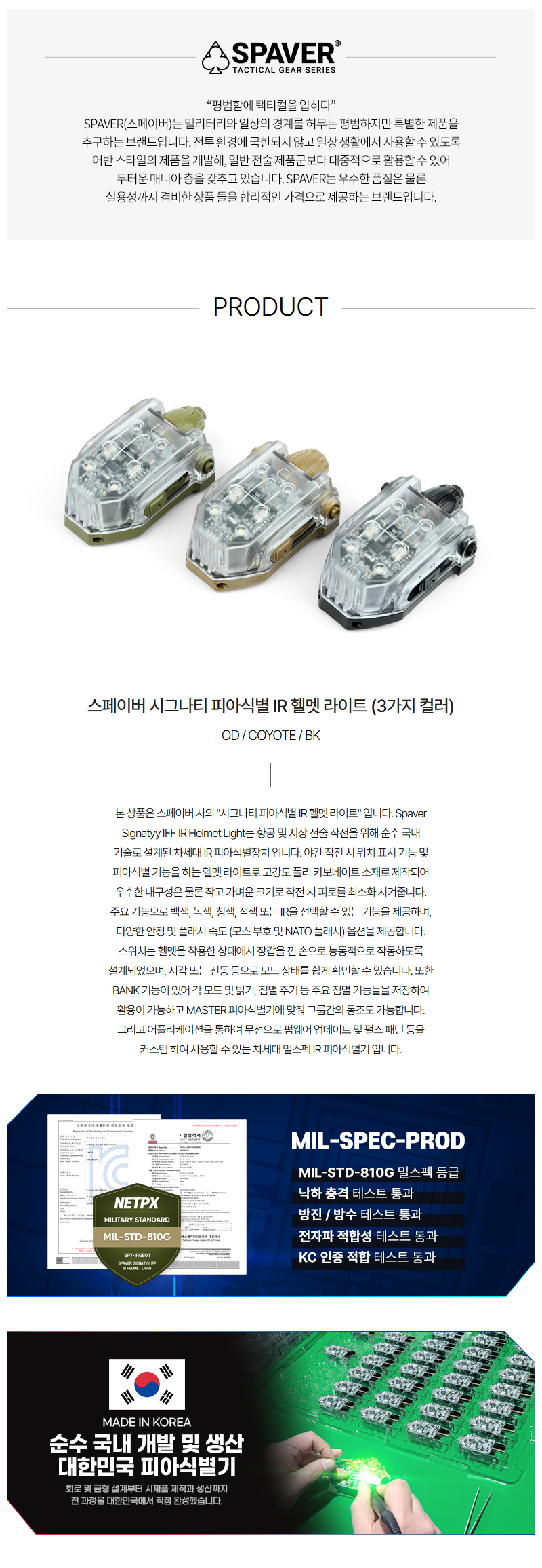 스페이버 시그나티 피아식별 IR 헬멧 라이트 (3가지 컬러)