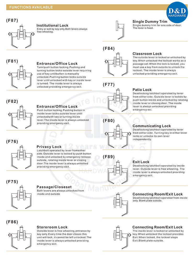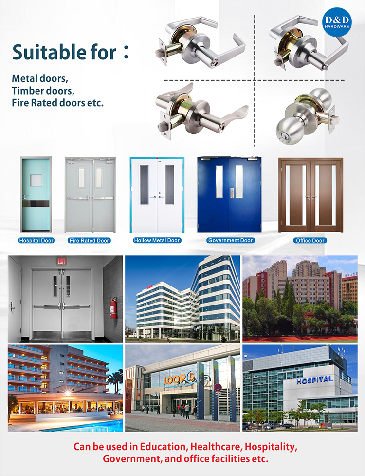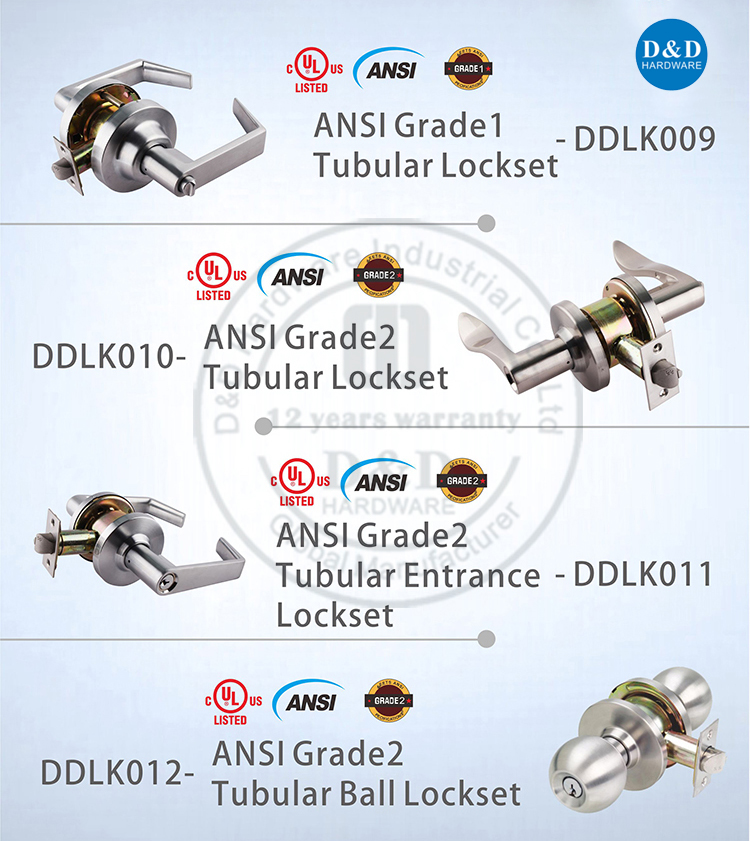 UL ANSI Grade 1 Grade 2 Door Furniture Ironmongery Zinc Alloy Fire Rated Handle Lock Set American Standard Safety Cylinder Tubular Lever Lock