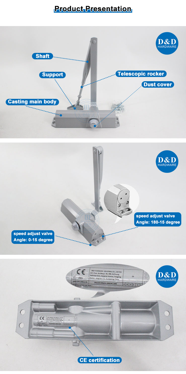 CE En1154 Adjustable Control Security Products Automatic Spring Sliding Hydraulic Swing Auto 180 Degree Aluminium Wood Commercial Fire Rated Double Do