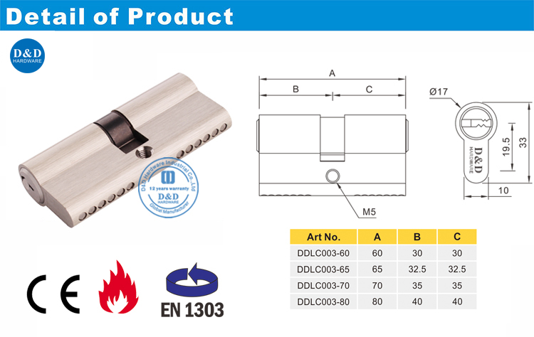 BS En1303 Euro Profile High Security Fire Rated Mortise Lock Core Solid Brass Entry Entrance Door Half Single Double Key Cylinder with Thumb Turn